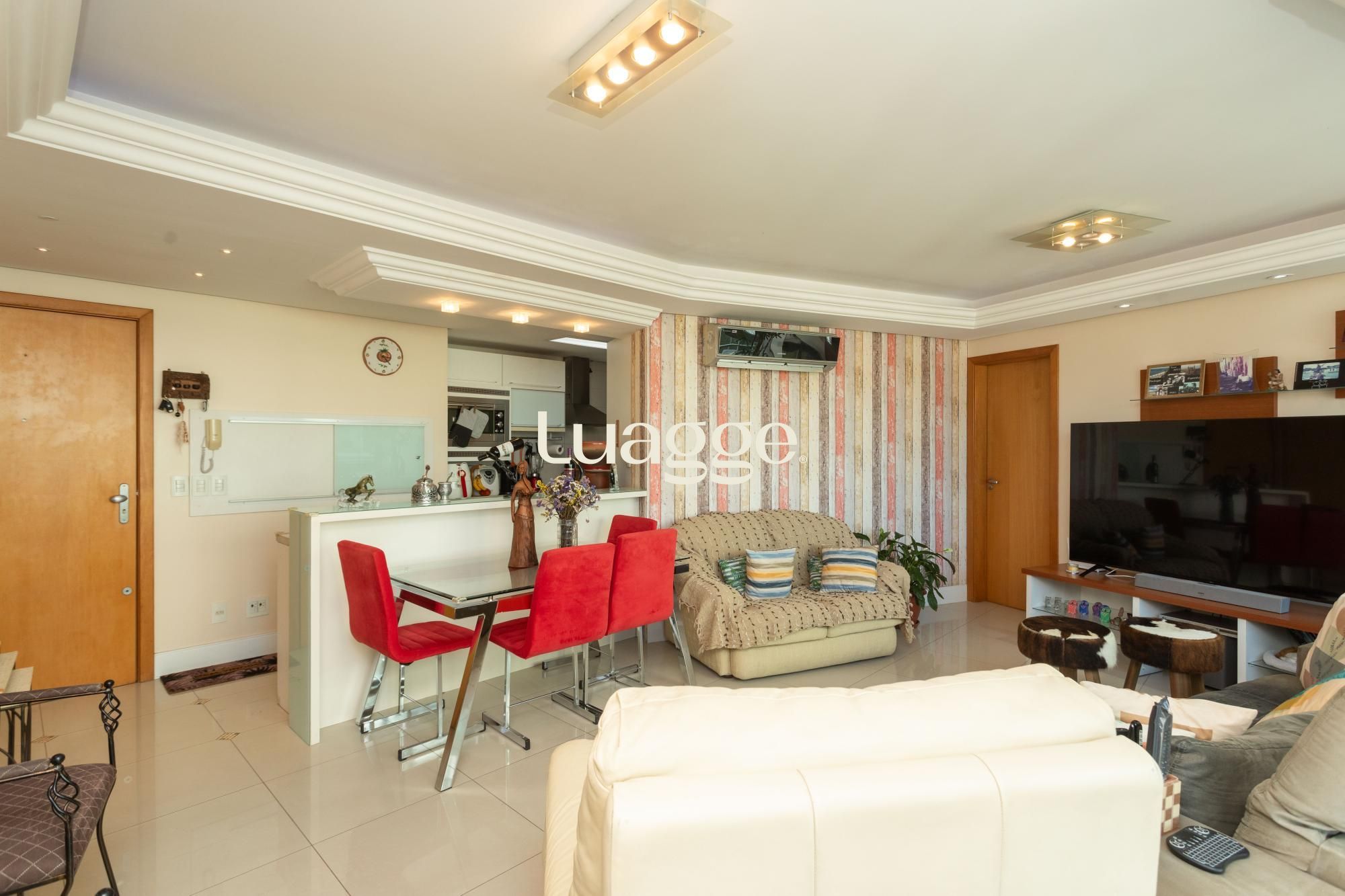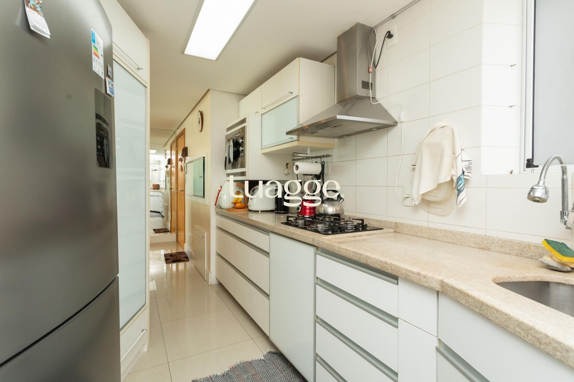 O apartamento dispõe de móveis planejados, cozinha equipada, sala de estar e sala de jantar integradas, armários embutidos e aquecimento a gás, garantindo conforto em todas as estações.