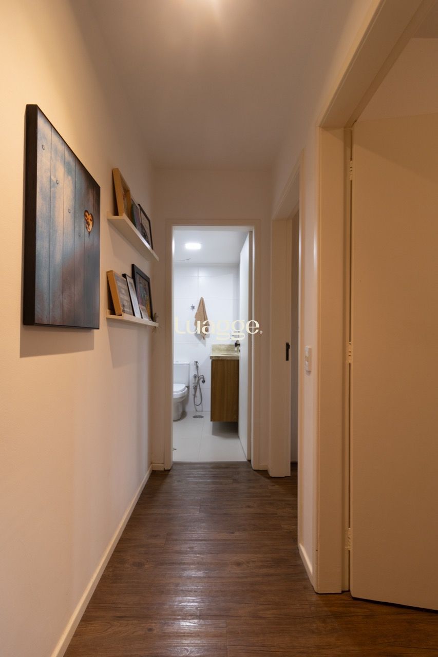 São 2 dormitórios, sendo 1 suíte, totalizando 2 banheiros (suíte + lavabo social), despensa, com um living amplo e aconchegante para dois ambientes, integrando sala de estar e jantar. A área social conta com assoalho em madeira, trazendo conforto e elegância, enquanto a cozinha em porcelanato com móveis planejados oferece praticidade no dia a dia. O apartamento ainda possui uma varanda separada, perfeita para momentos de relaxamento, e área de serviço independente.