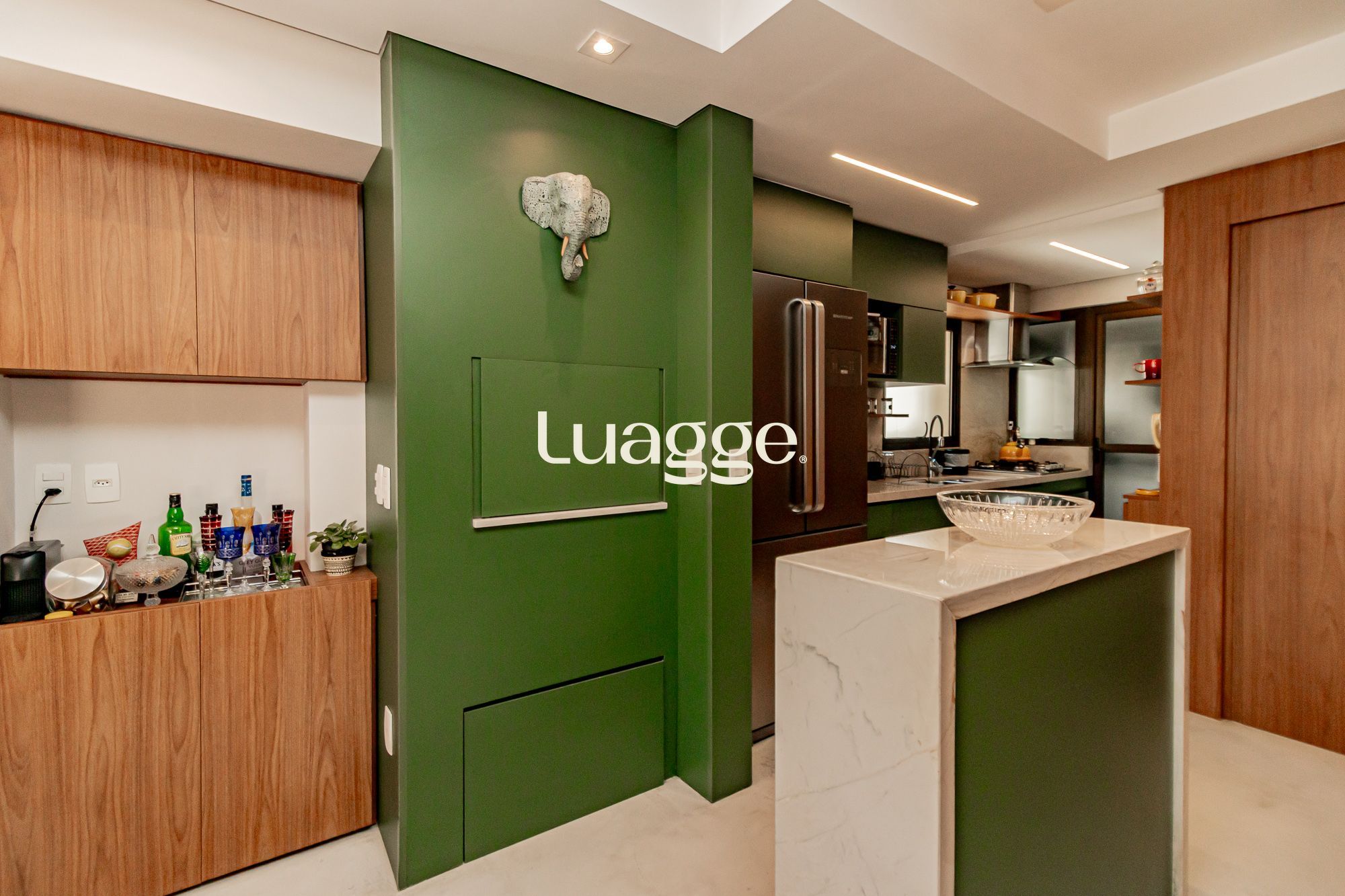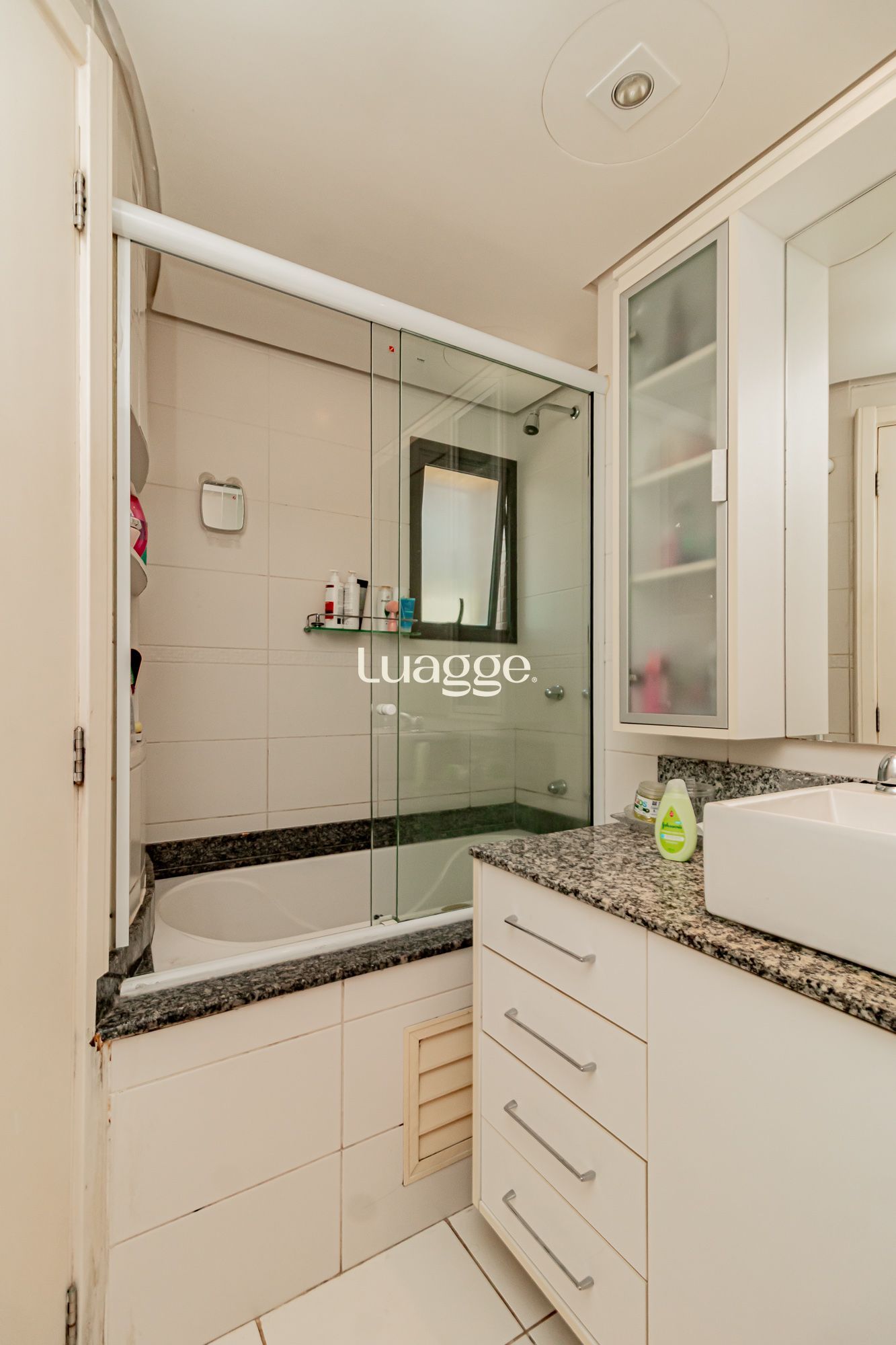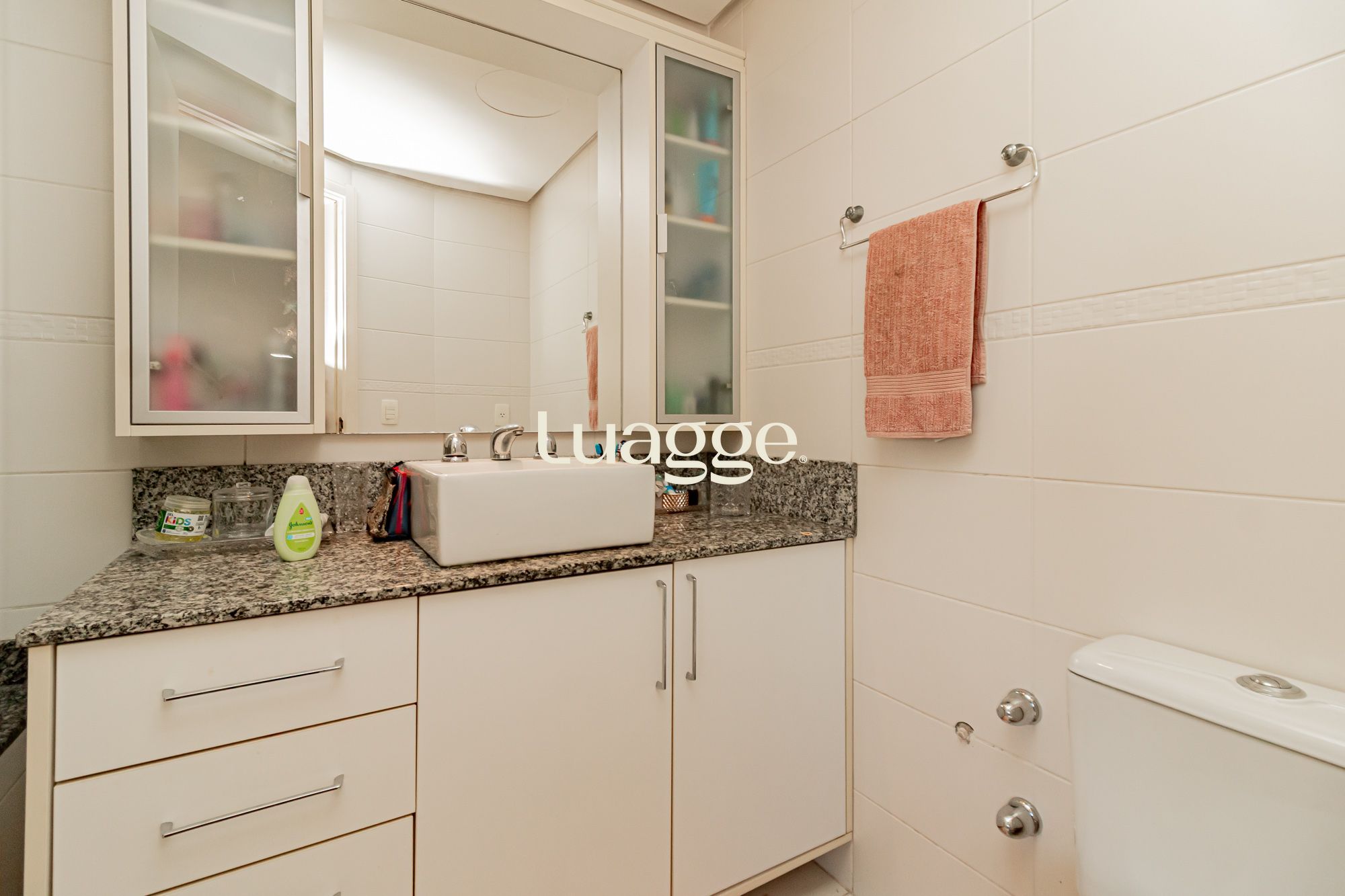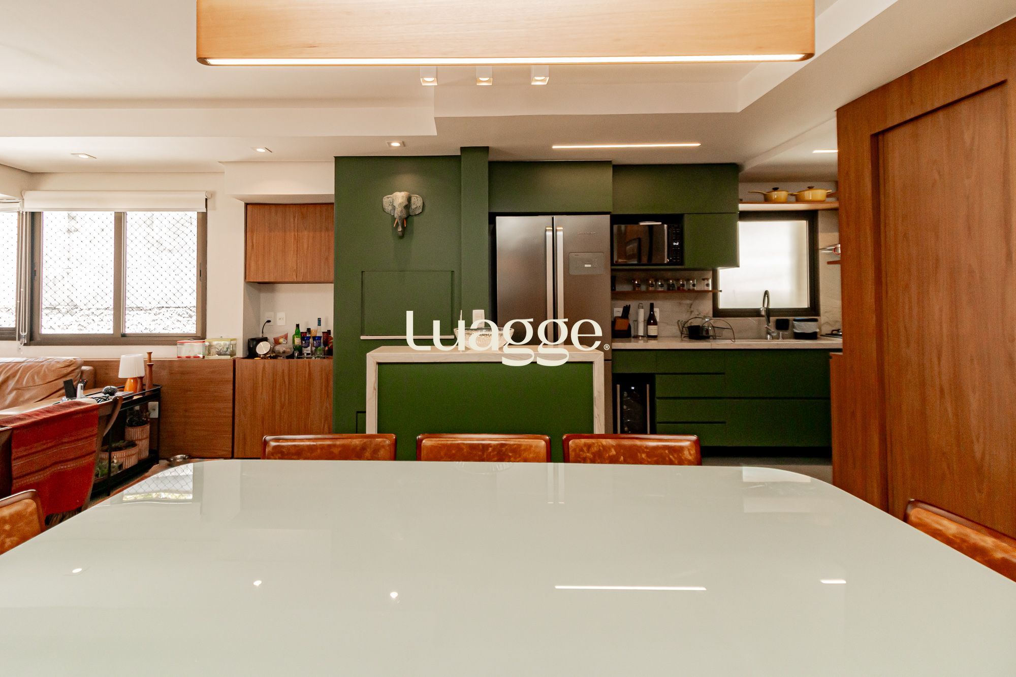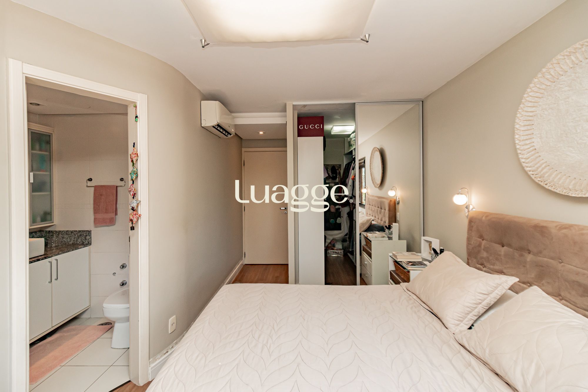 02 suítes, uma delas com closet, banheira, cozinha americana integrada com a sala de estar, lavado, churrasqueira, piscina na área externa ensolarada e 2 vagas de garagem.