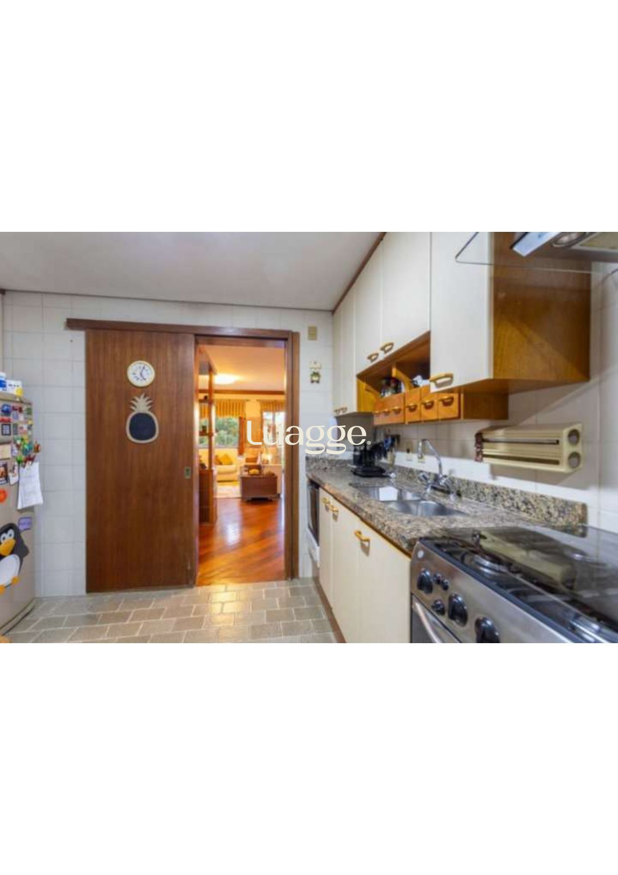 3 Dormitórios ( 2 suites ), banho social, hall de entrada, living 2 ambientes com lareira em piso tabuão, gabinete, sacadão aberto com churrasqueira, cozinha ampla e montada, lavanderia e w.c. auxiliar.