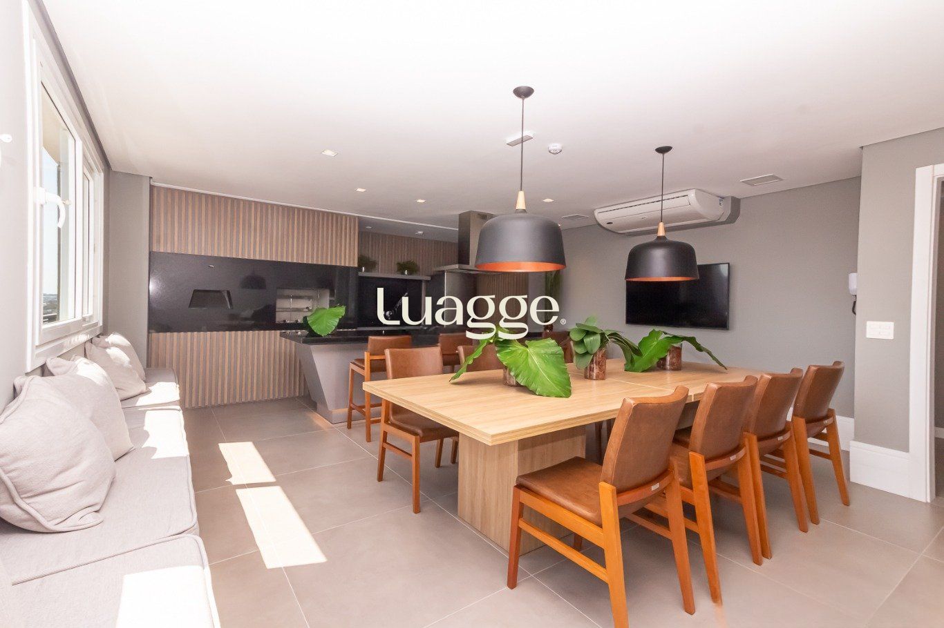 Sala de estar e jantar com móveis planejados, janela grande com ventilção natural. Cozinha e área de serviço planejada. Banheiro planejado, com iluminação solar e ventilação natural.