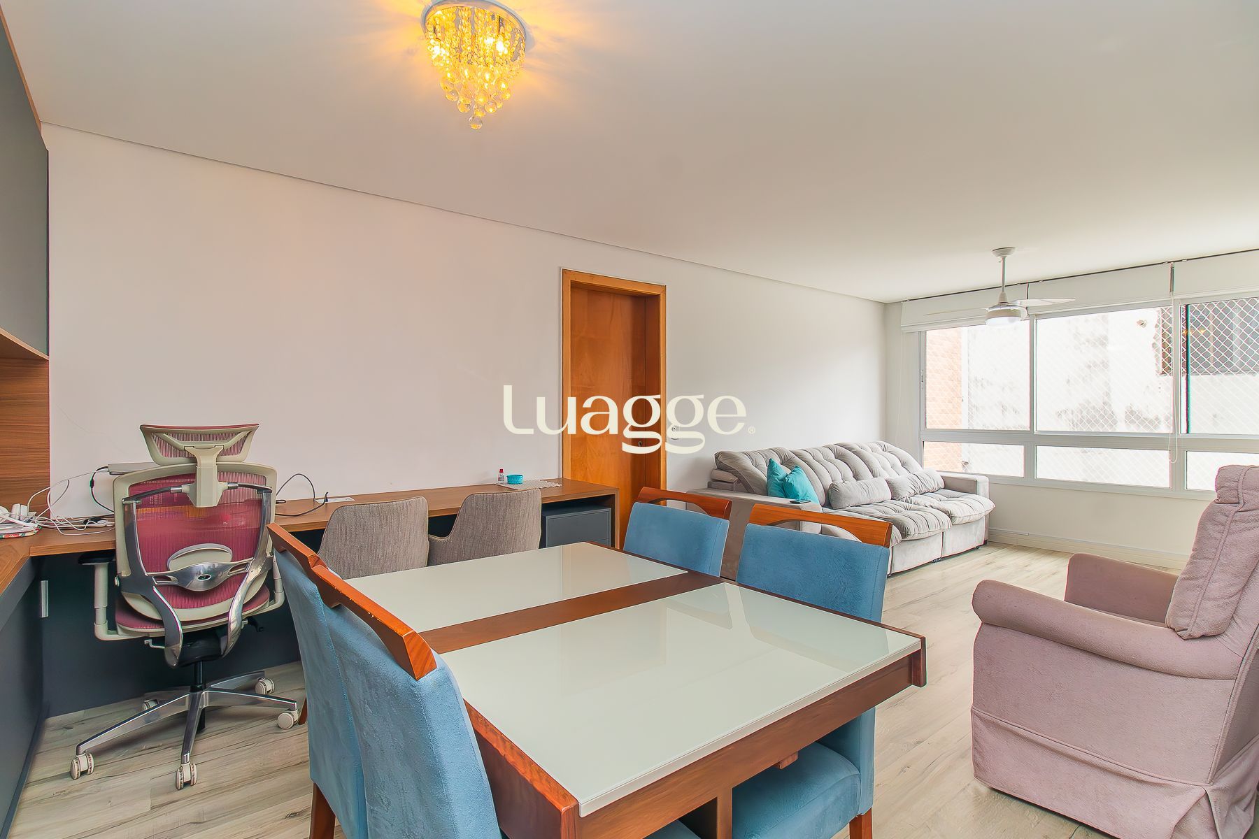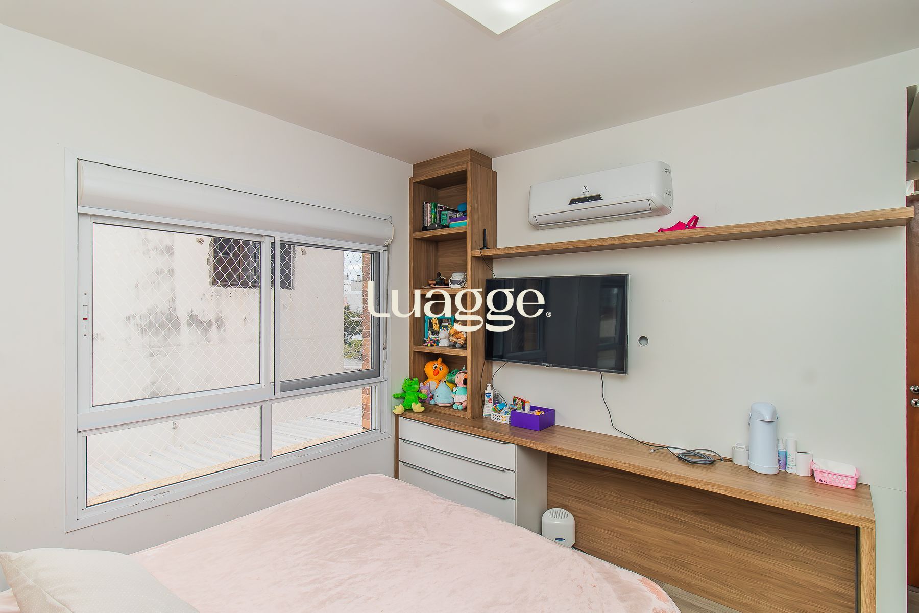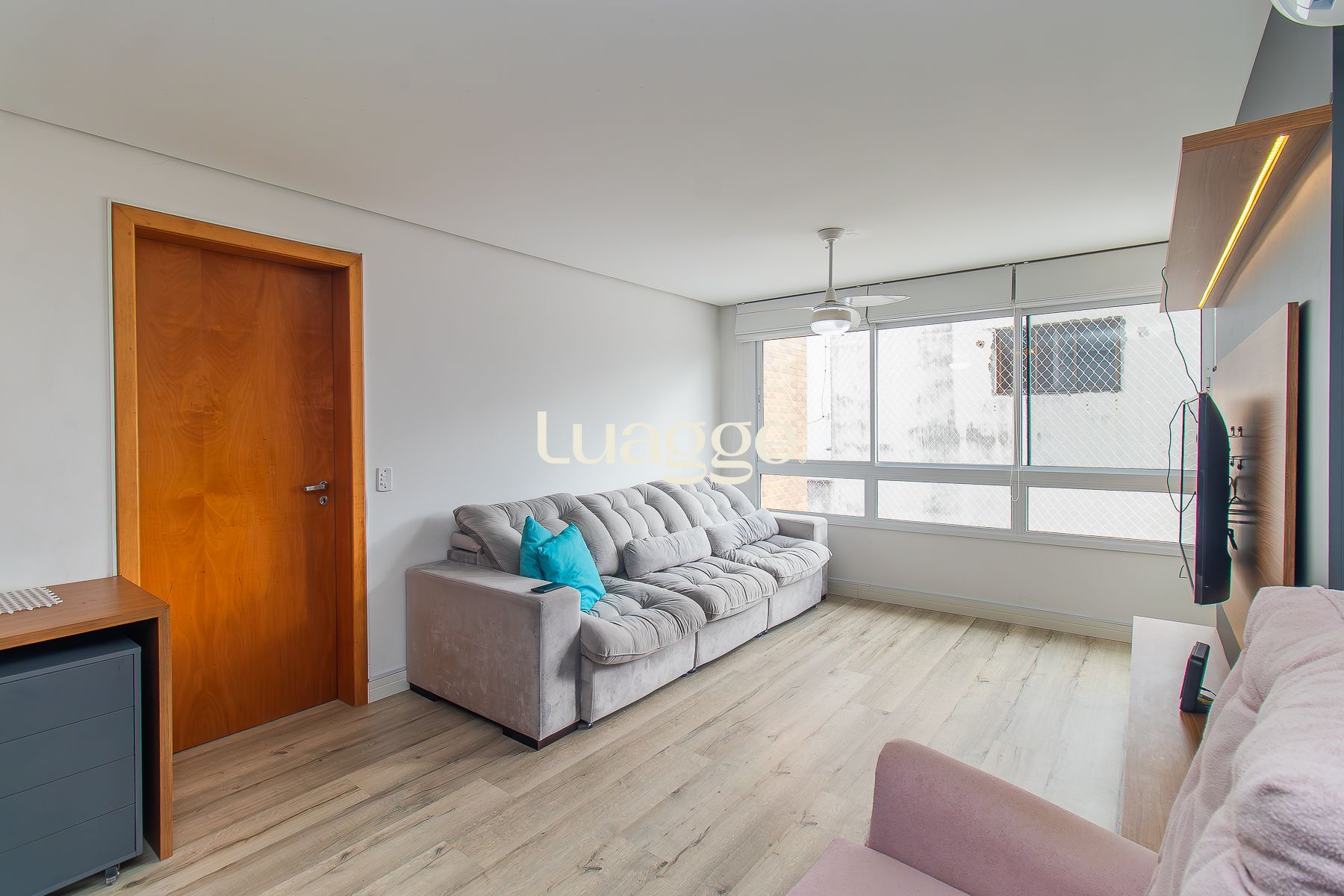 Ficam móveis fixos, junker digital, 3 splits (da sala e dos 2 quartos), telas de proteção contra mosquitos e bichos e redes de proteção para pets e crianças, boxes dos 2 banheiros, chuveiros, ventiladores de teto e lustres, varal fixo e sofá.