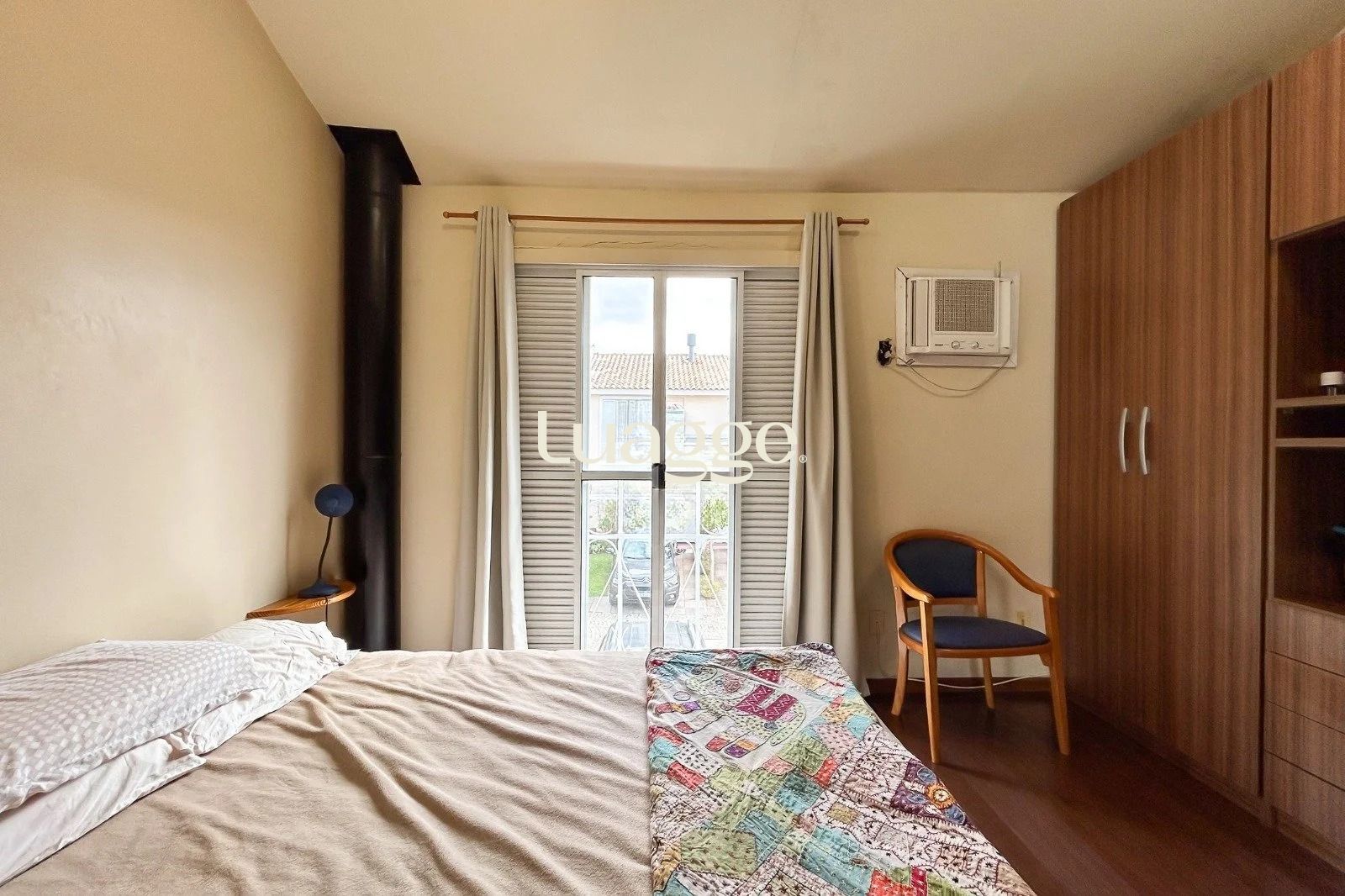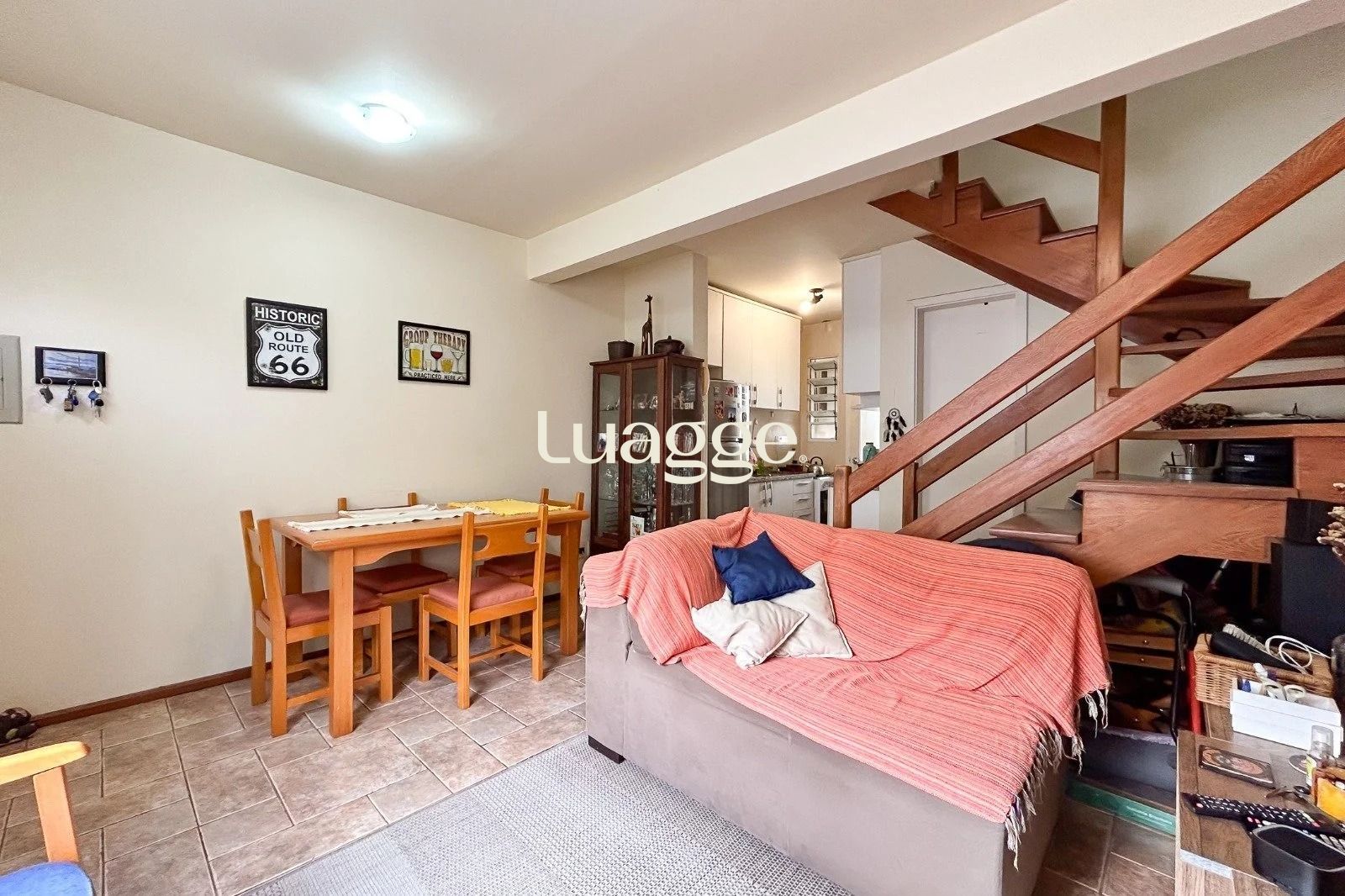 Conta com 2 dormitórios, sendo 1 suíte, banheiro social em estilo americano, cozinha integrada ao living e lareira de alvenaria. Possui espera para lavabo.