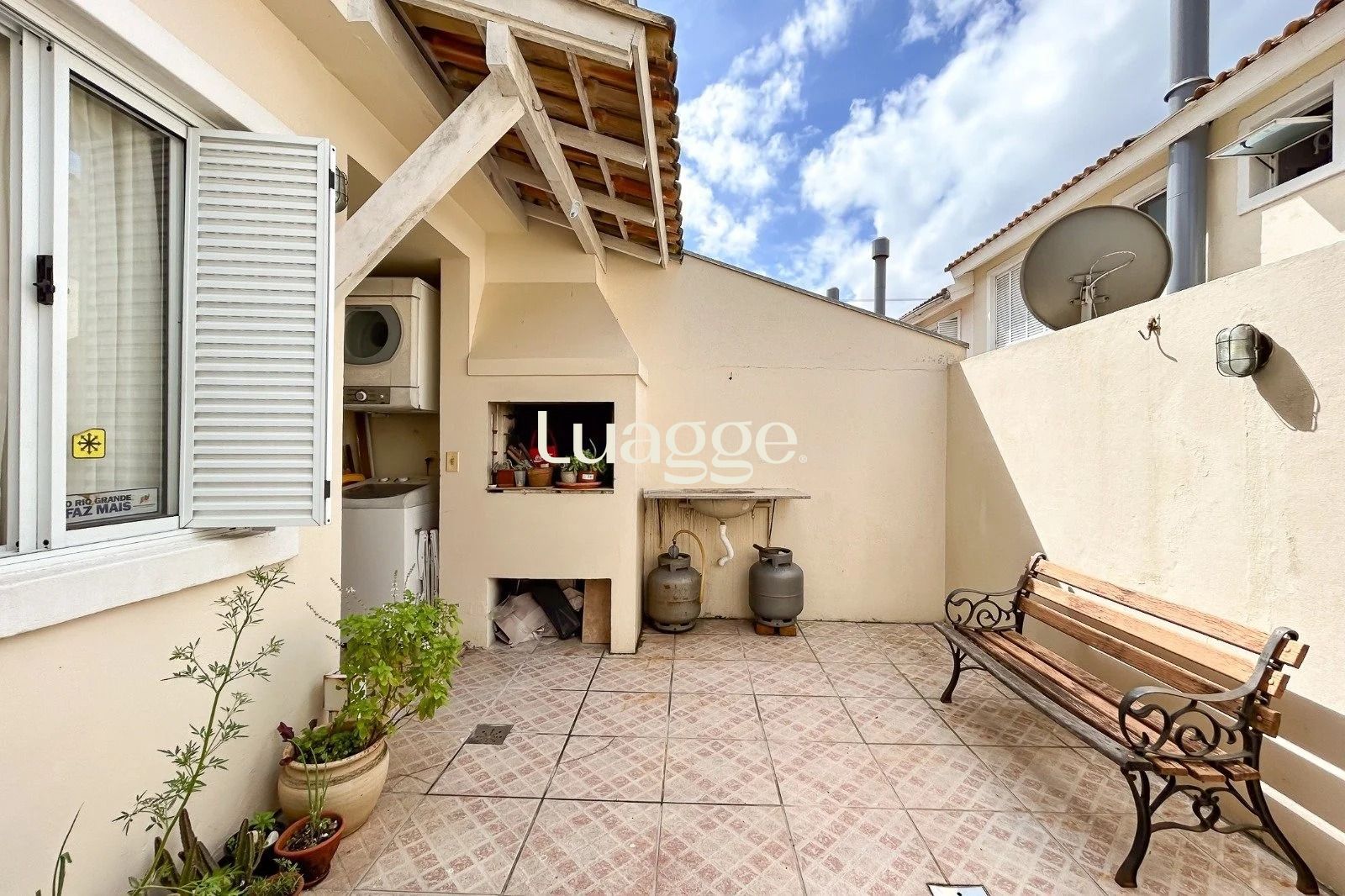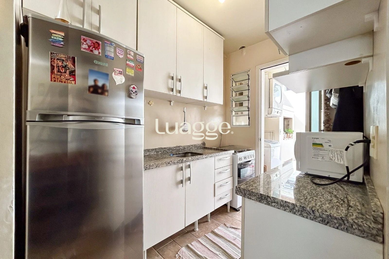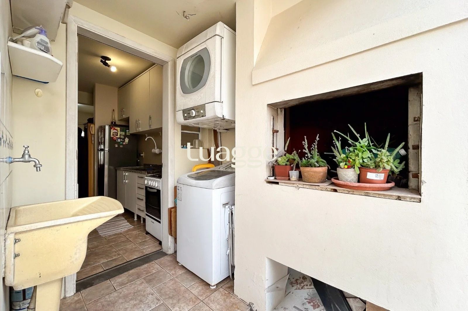 Área externa com pátio privativo e churrasqueira, além de 1 vaga de garagem. Móveis fixos permanecem no imóvel.
