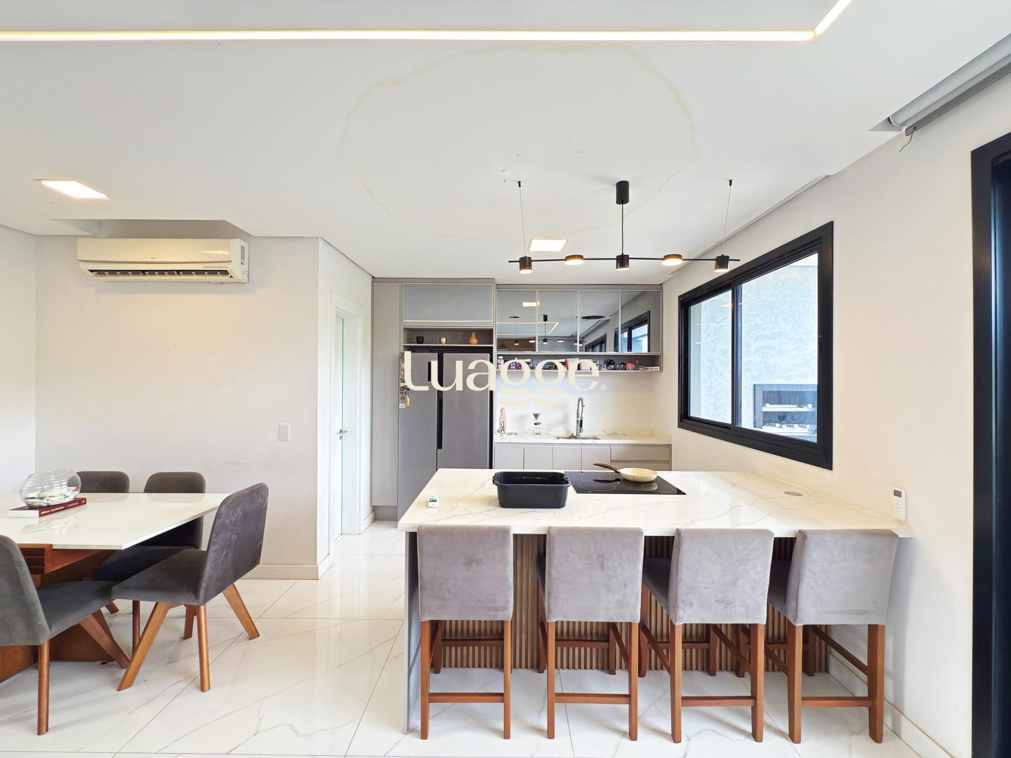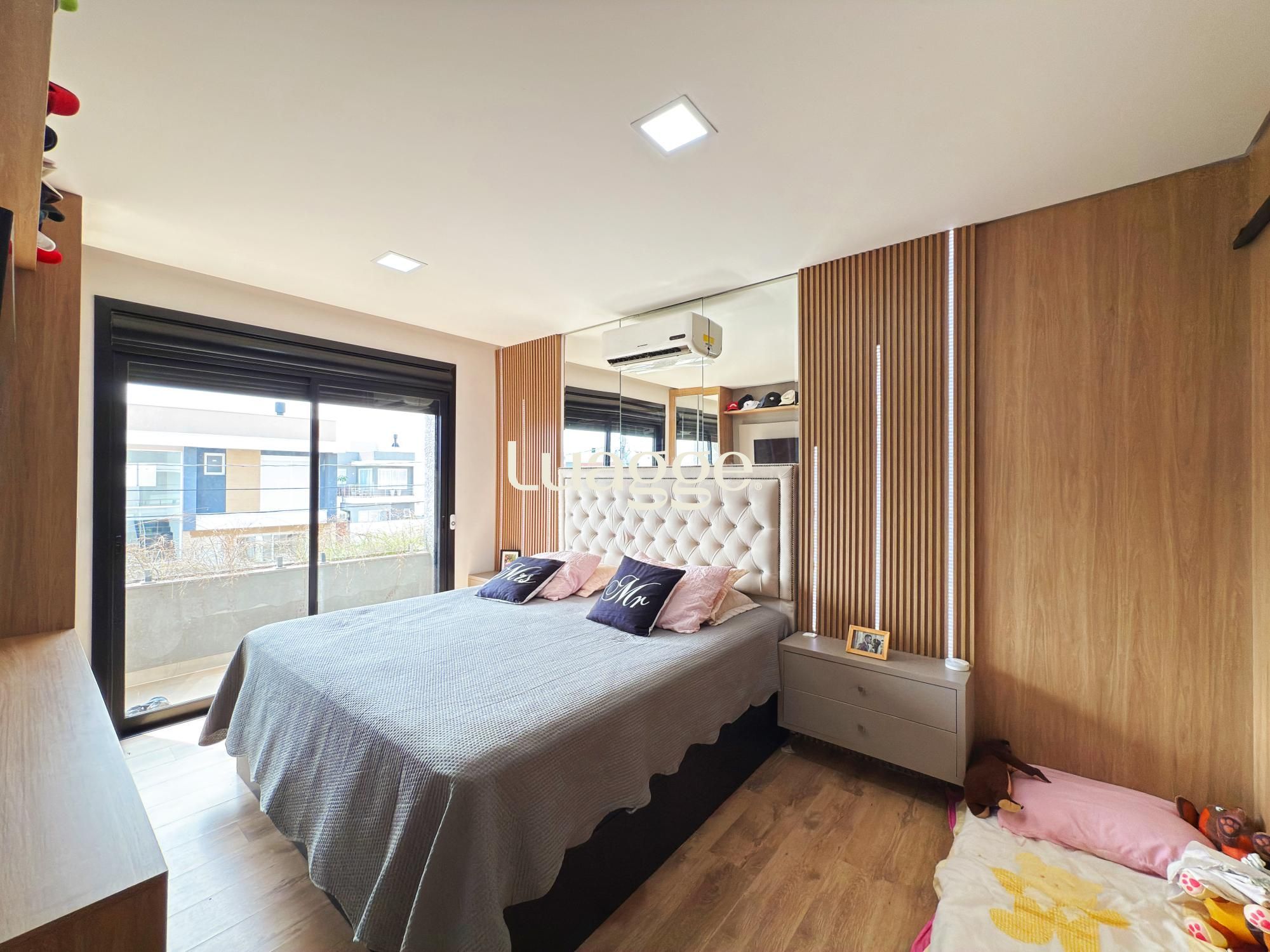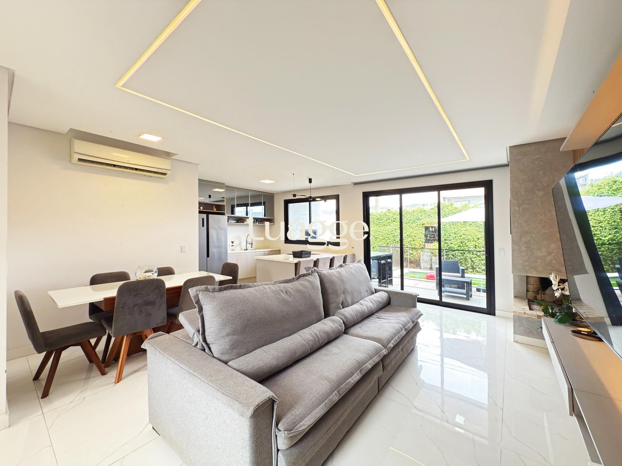 Sobrado contemporâneo semi mobiliado, com excelente padrão construtivo, composto por 3 suítes, sendo a suíte master com closet. Living integrado com lareira e lavabo, proporcionando conforto e funcionalidade. Área externa com pátio privativo, piscina aquecida e espaço gourmet, ideal para receber amigos e familiares. Possui vaga para 2 carros.