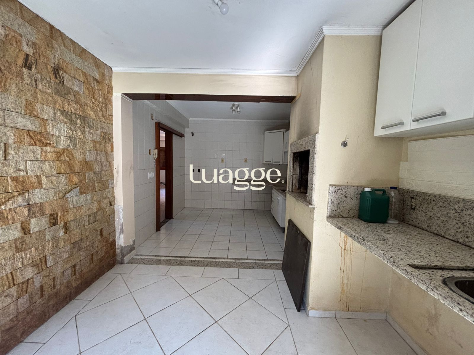 A cozinha é bem distribuída, com lavanderia separada, além de churrasqueira integrada para momentos de lazer. O imóvel dispõe ainda de um pequeno pátio, garantindo ventilação e espaço externo.