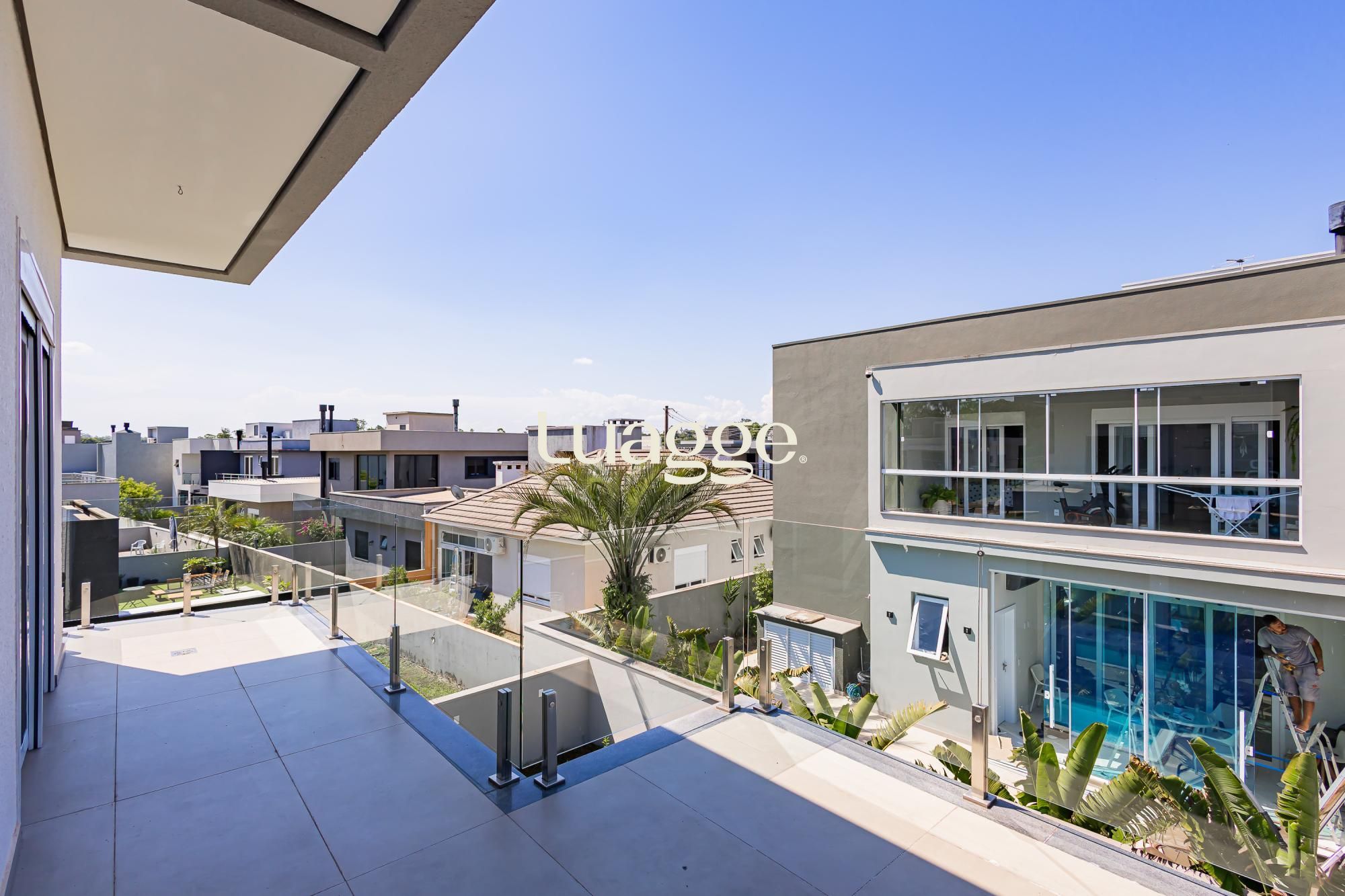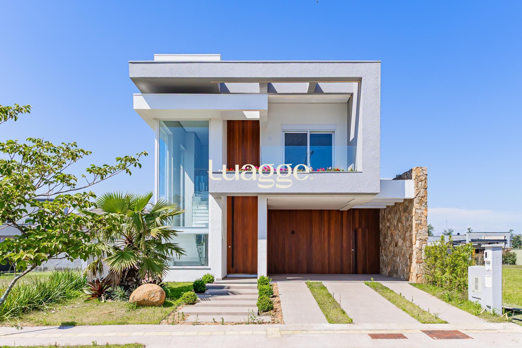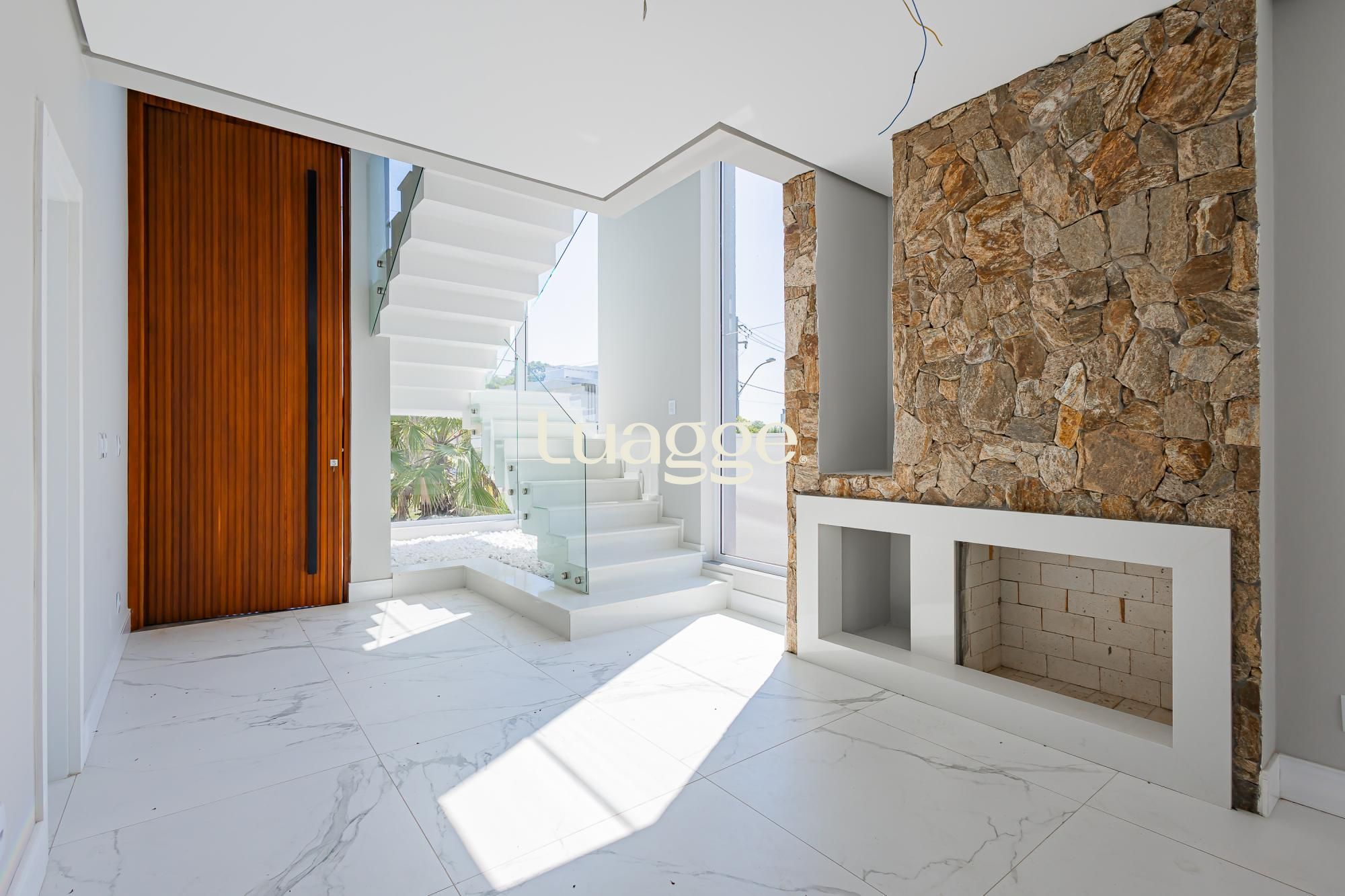 Residência moderna com 3 dormitórios, todos suítes com sacada. Conta com living amplo em dois ambientes com lareira, integrado à cozinha, além de um elegante espaço gourmet com churrasqueira. Dispõe também de lavabo, escritório e área de serviço.