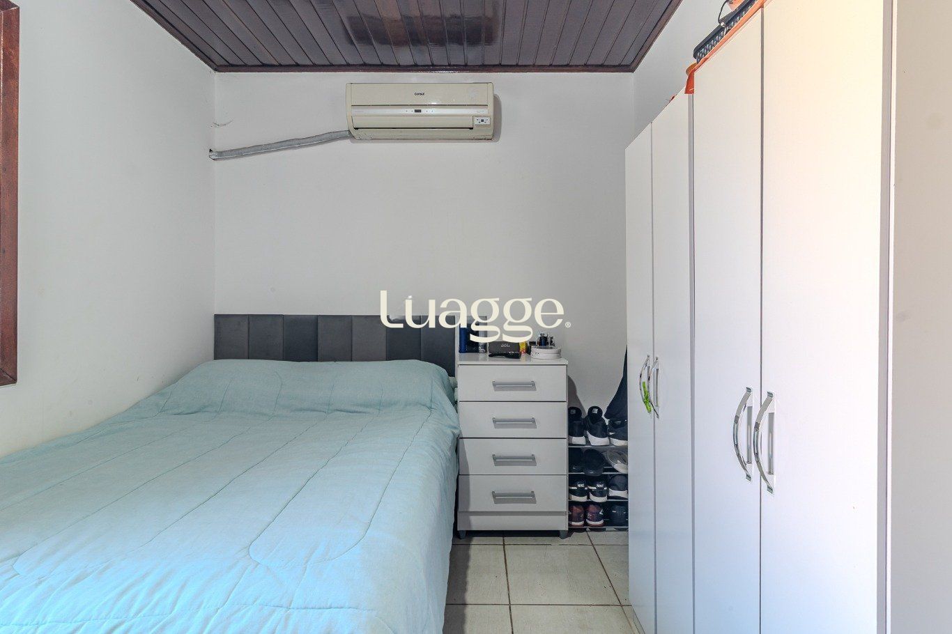 Casa com infraestrutura com 81 metros quadrados, 3 dormitórios bem distribuídos, janelas grandes e ar condicionado, sala de estar ampla com ventilação natural, cozinha funcional, área de serviço, banheiro social e ar-condicionado.