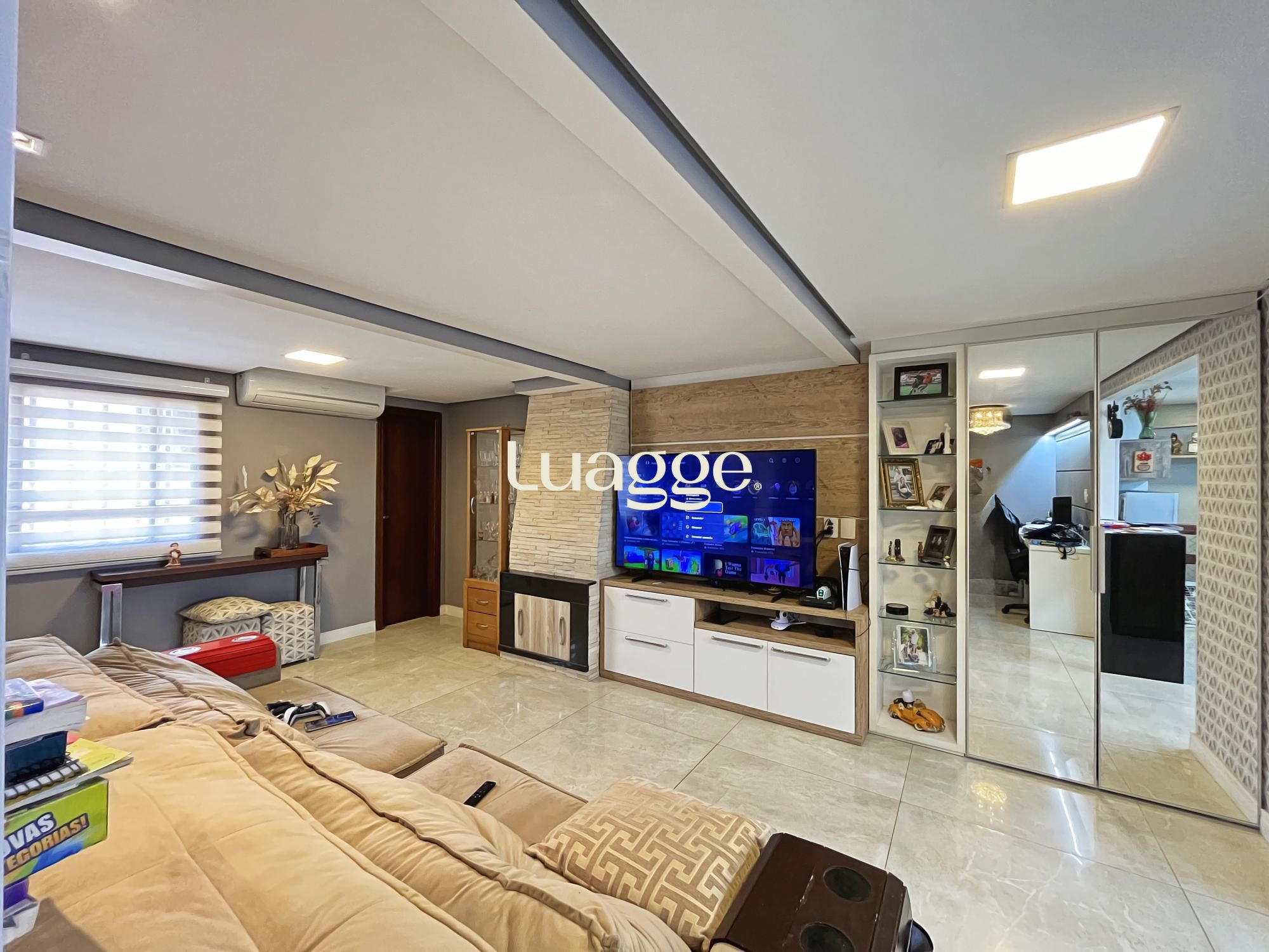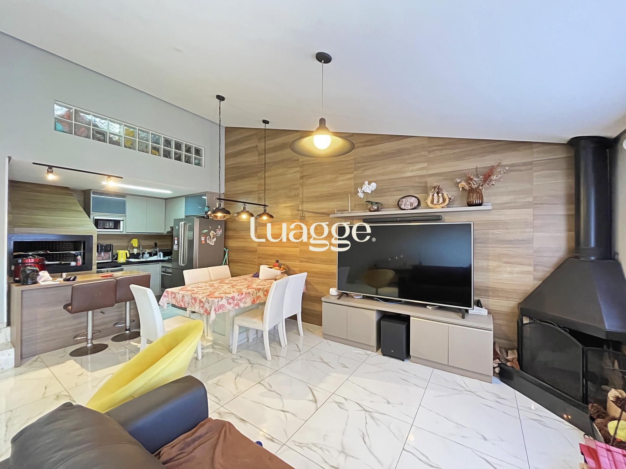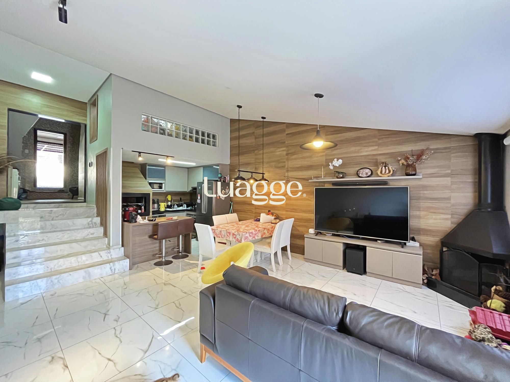 Na parte inferior um aconchegante espaço com lareira e uma sala de estar para você aproveitar com a sua família.