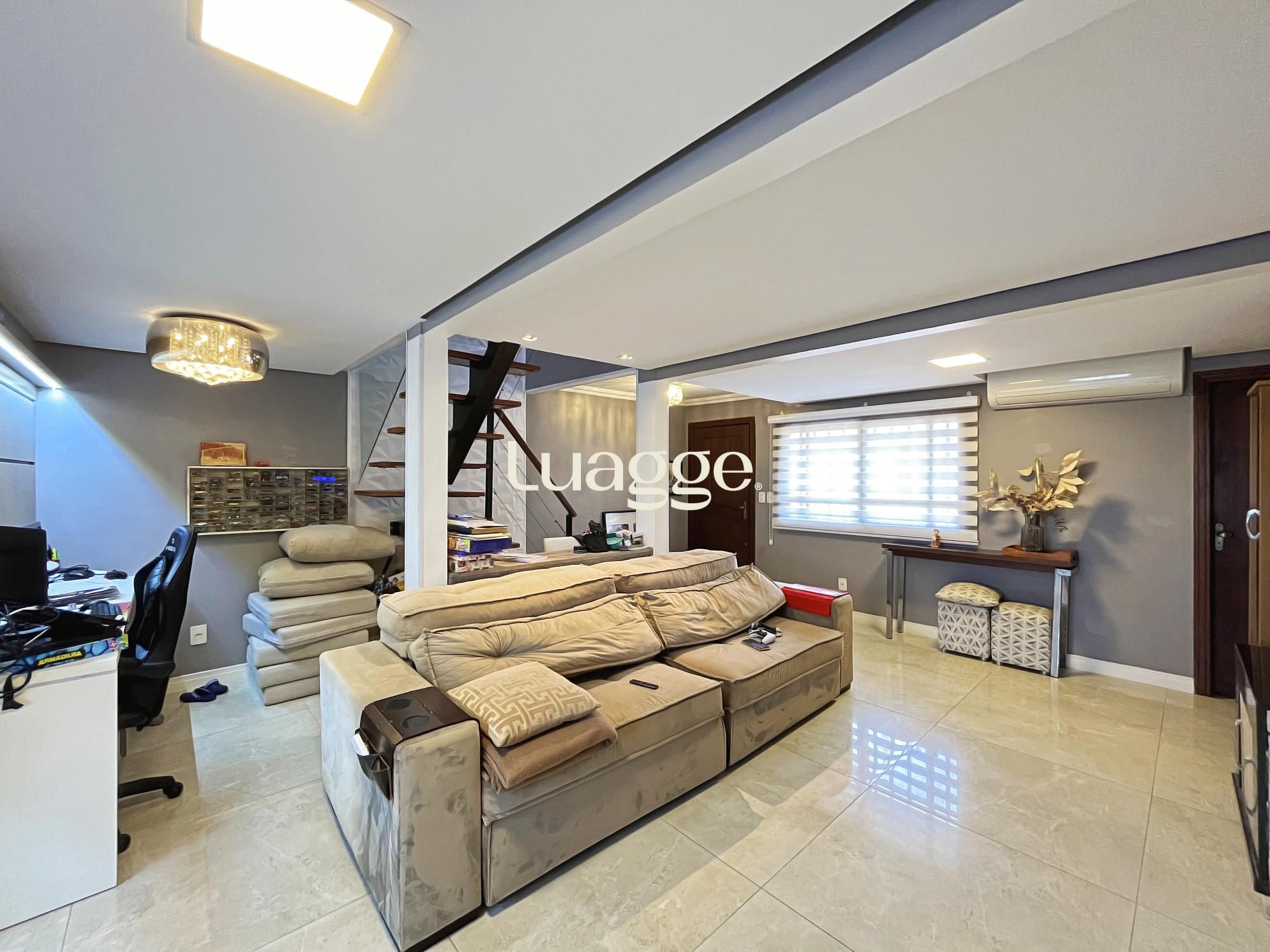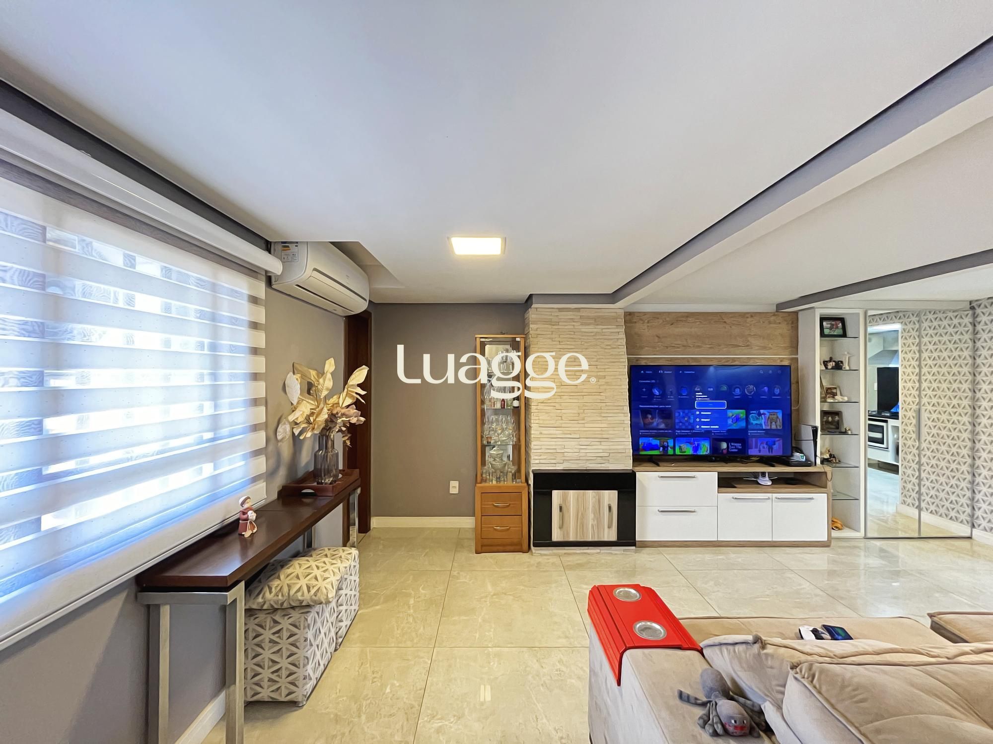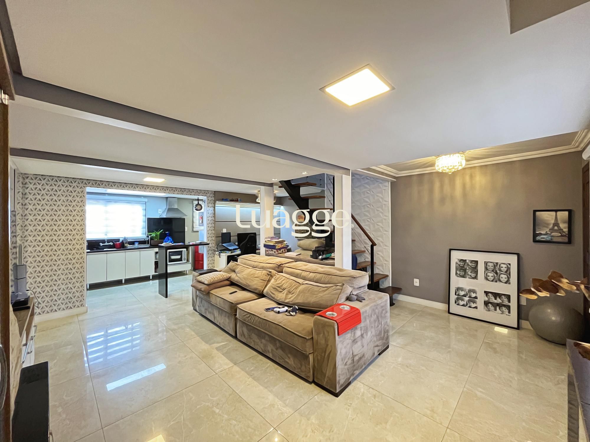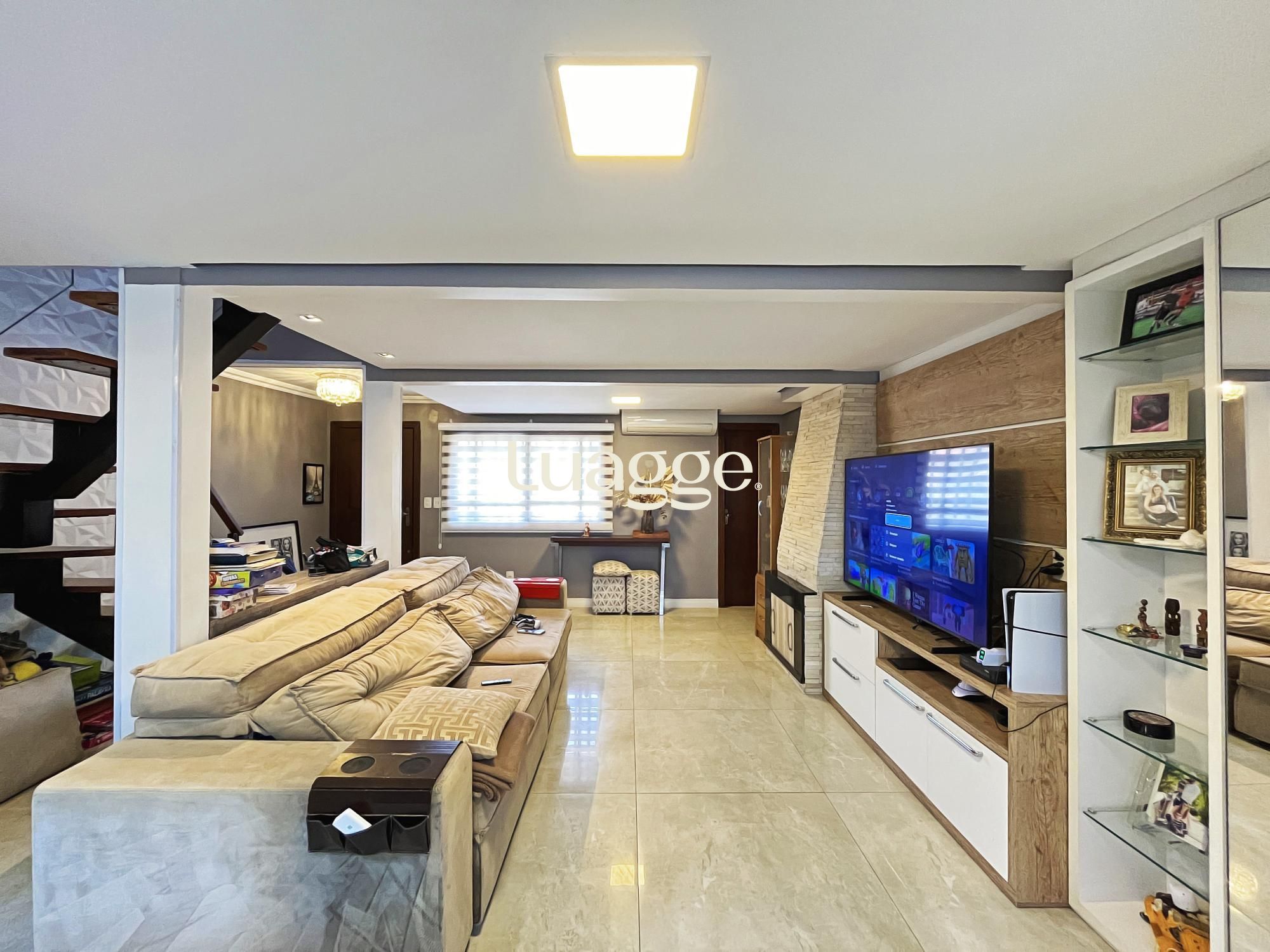 Na parte inferior um aconchegante espaço com lareira e uma sala de estar para você aproveitar com a sua família.