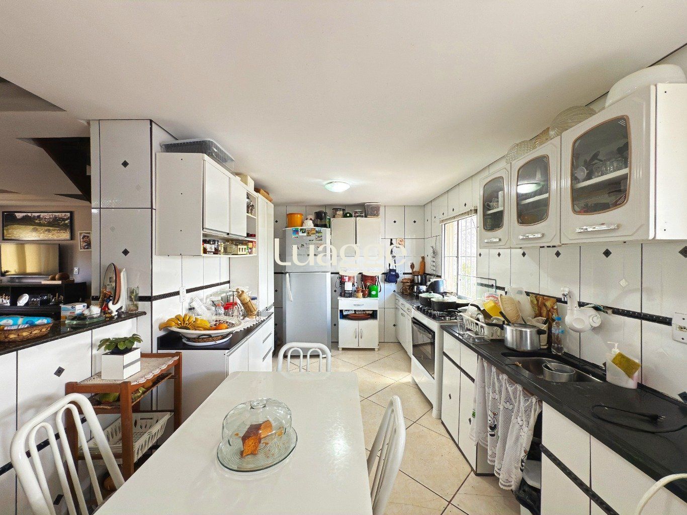 Nos fundos, há um espaço adicional independente, composto por quarto, cozinha e banheiro, possibilitando diferentes usos, como moradia auxiliar, escritório ou área de apoio.