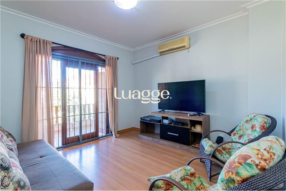 Esta espaçosa casa de dois pavimentos, com 293m² privativos, semimobiliada é perfeita para quem valoriza conforto, espaço e boa localização. No térreo, o living com lareira integra-se ao espaço gourmet com churrasqueira, criando um ambiente acolhedor para receber. A cozinha é ampla, conta com despensa e se conecta com um escritório funcional e lavabo. No andar superior, estão os quatro dormitórios, incluindo uma suíte com hidromassagem. A casa ainda oferece amplo pátio, com espaço pra piscina, jardim.