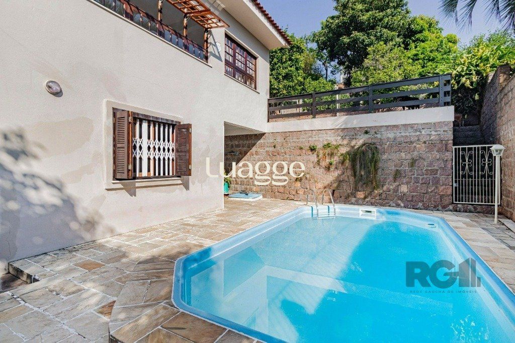 Excelente casa de 267m² de área privativa no bairro Tristeza! São 2 pavimentos sendo o andar térreo composto por amplo living, lavabo, 1 dormitório, sala de jantar, cozinha, 2 banheiros e lavanderia. O andar superior dispõe de 2 dormitórios com sacada e vista, sendo 1 suíte com hidromassagem, banheiro social, salão de festas com 50 m² e churrasqueira. Possui vista espetacular para cidade e rio Guaíba. Conta com amplo pátio com piscina e lindo quintal arborizado.