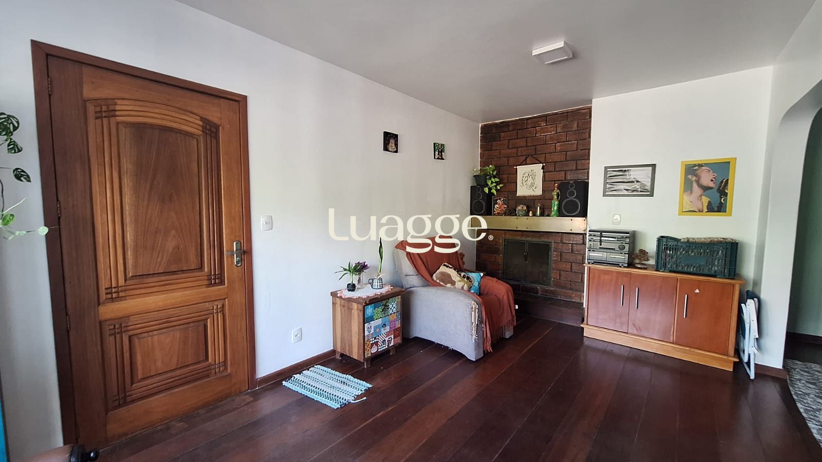 Sala de estar ampla com lareira, ideal para momentos acolhedores