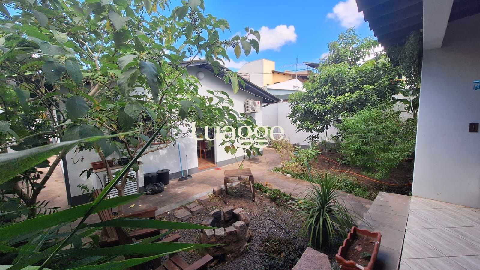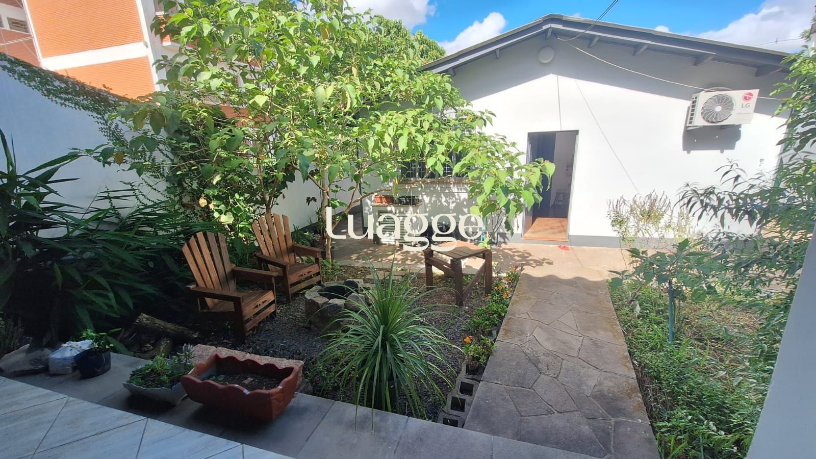 Pátio frontal e pátio nos fundos