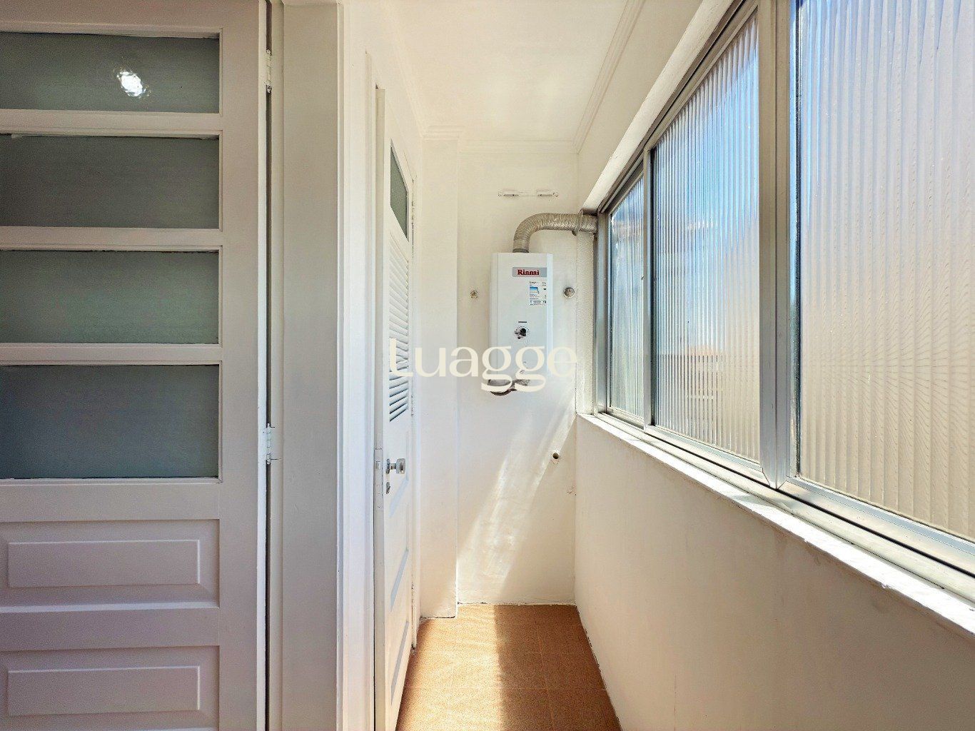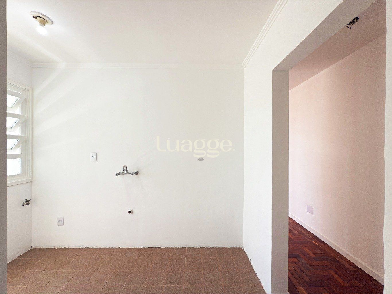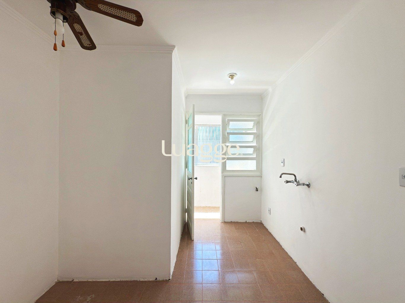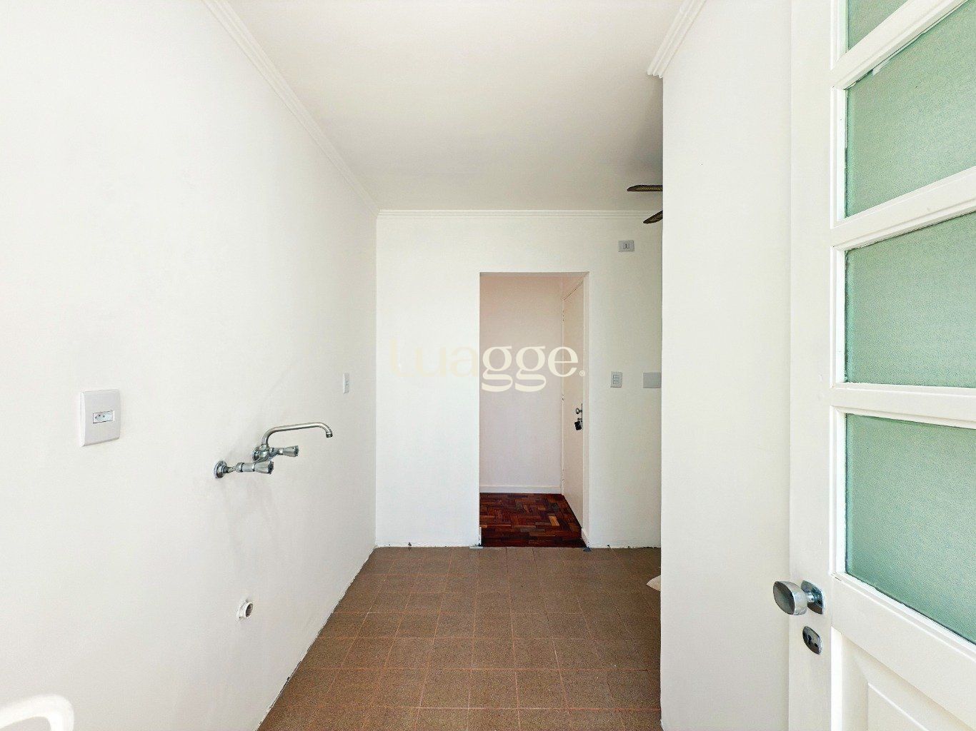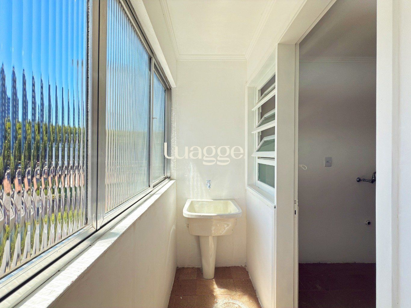 Área de serviço separada, ventilada e iluminada, com janelas amplas.