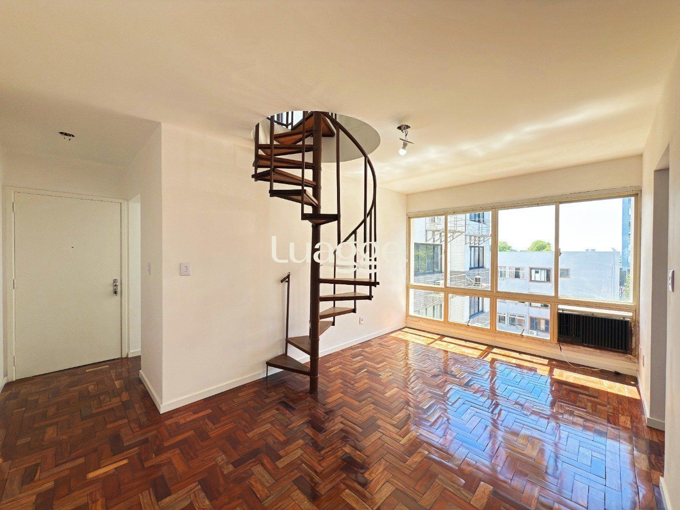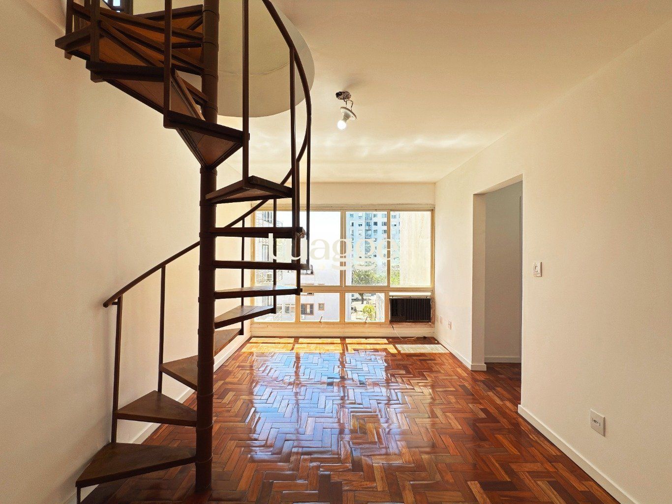 Sala ampla, iluminada e ventilada, com janela grande e ótima entrada de luz natural.
