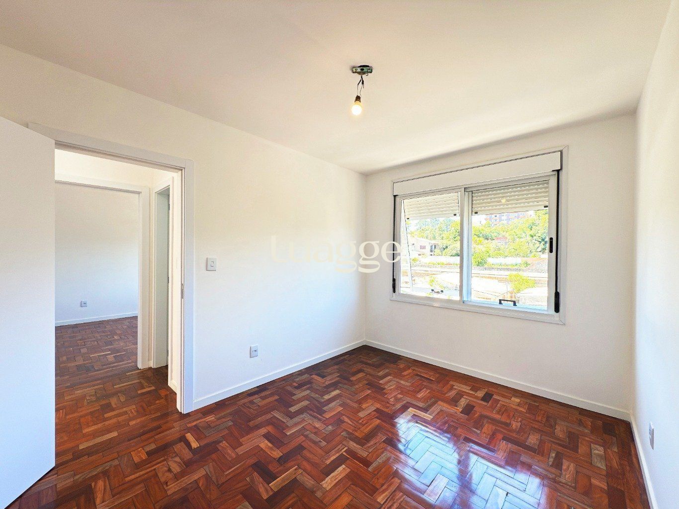 Quarto amplo, iluminado e arejado, com janela grande e boa incidência solar.