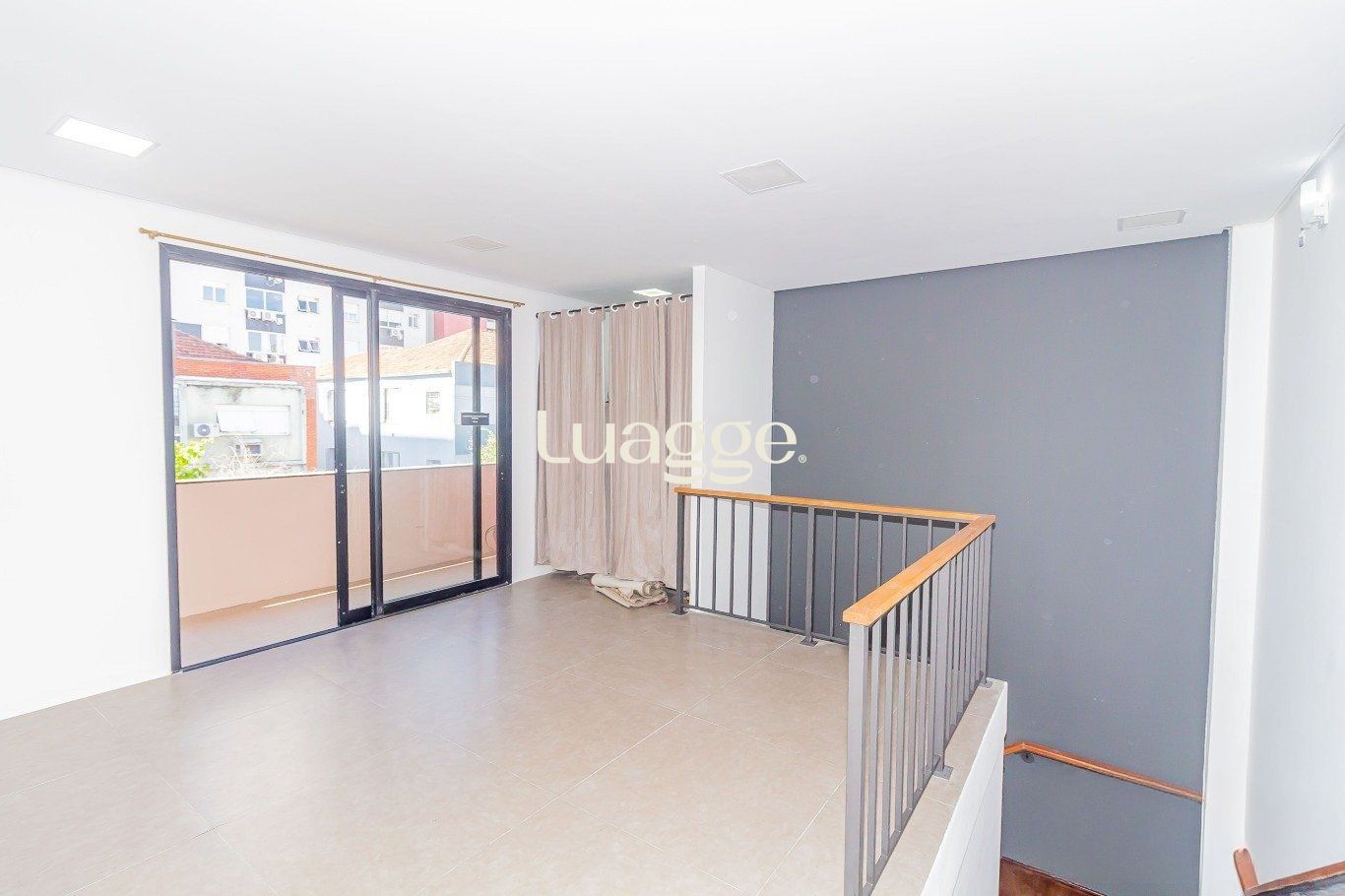 O terceiro pavimento oferece uma sala ampla, arejada e bem iluminada, com sacada e vista panorâmica, ideal para diferentes usos comerciais ou corporativos.