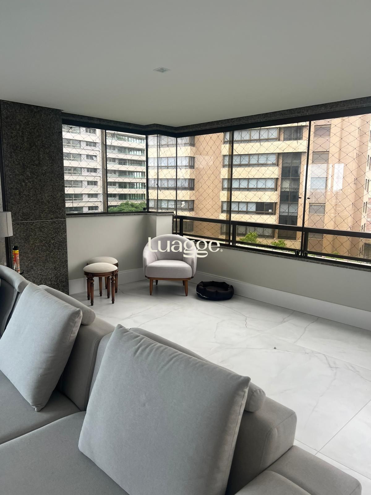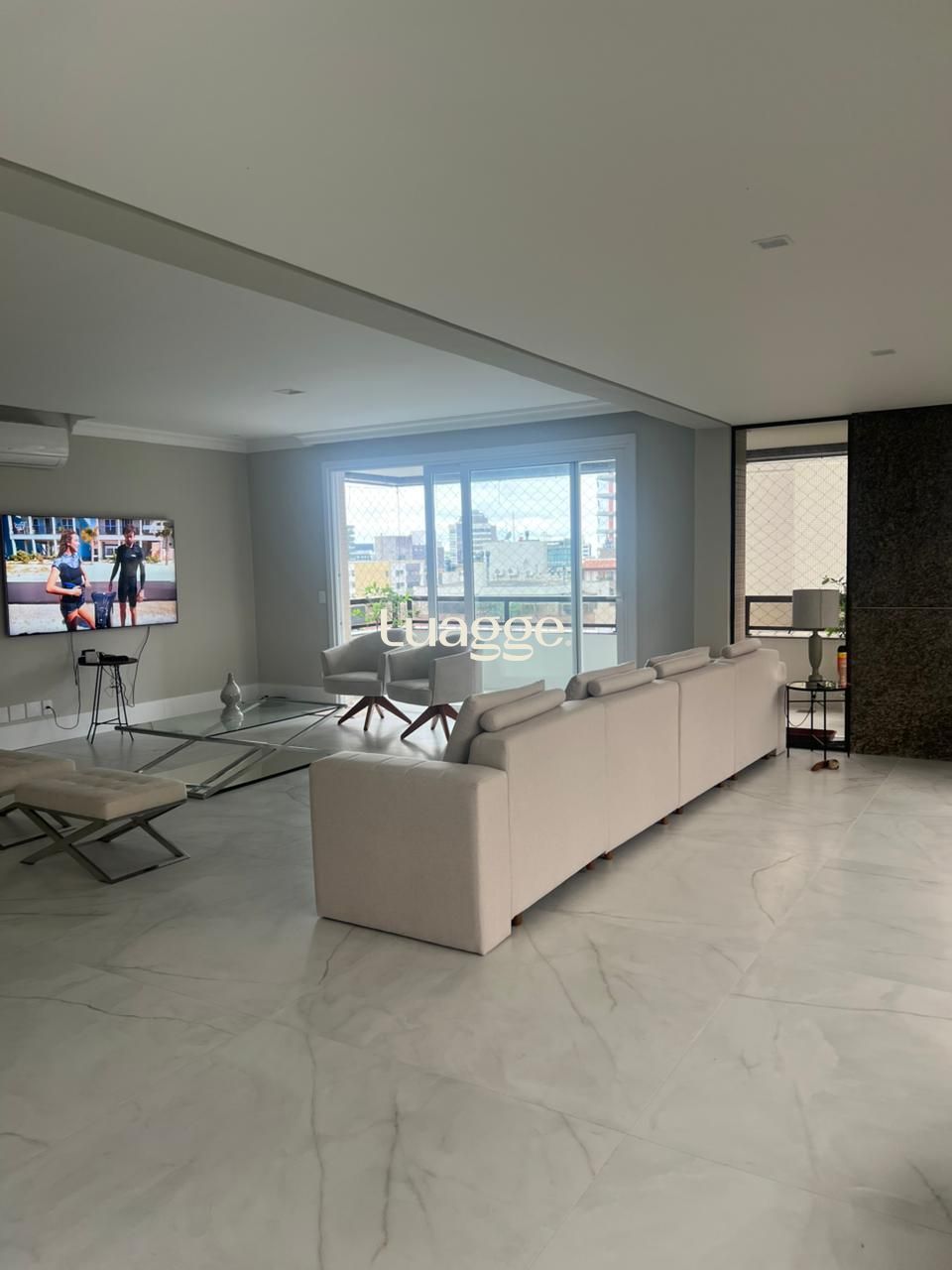 O living possui 3 ambientes, lareira e duas sacadas, sendo que uma delas está integrada ao espaço de estar e jantar, com churrasqueira. O imóvel ainda oferece copa, cozinha, despensa e 3 vagas de garagem individuais.