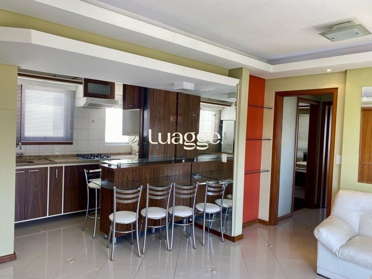 O segundo dormitório conta com sacada integrada, trazendo mais amplitude e luminosidade ao espaço. O living para dois ambientes se conecta à cozinha americana, proporcionando praticidade e integração no dia a dia. O imóvel possui piso laminado em todos os ambientes e está semi mobiliado, incluindo a cozinha.