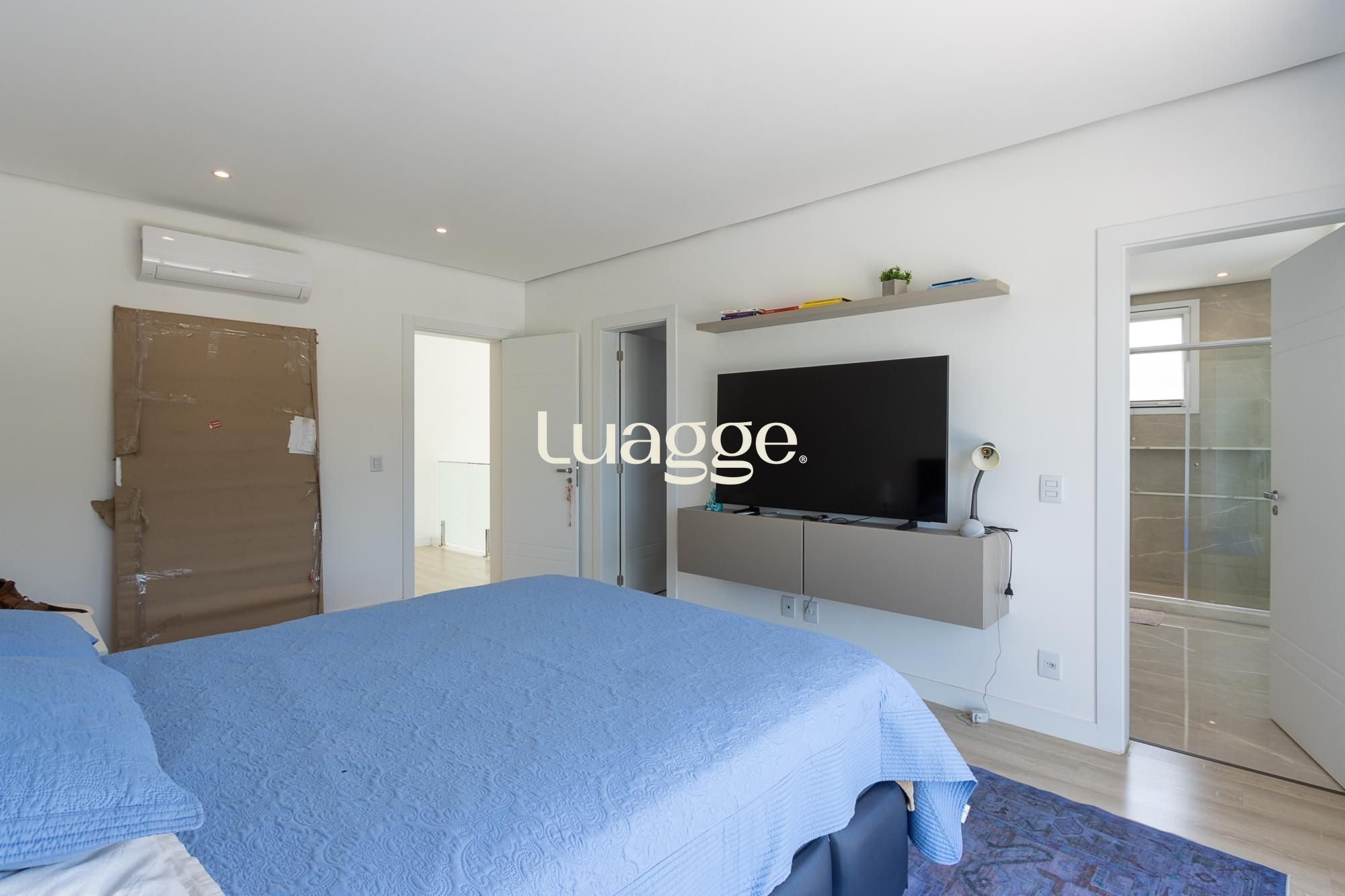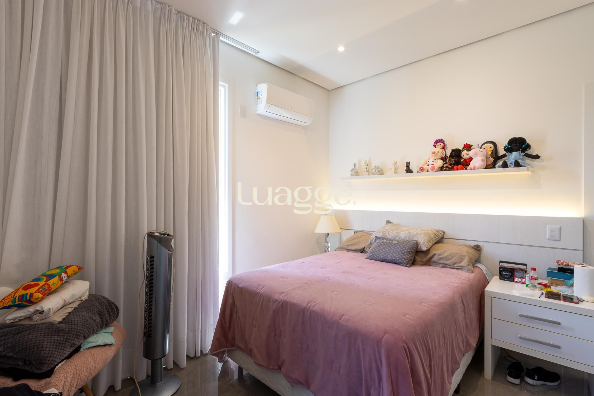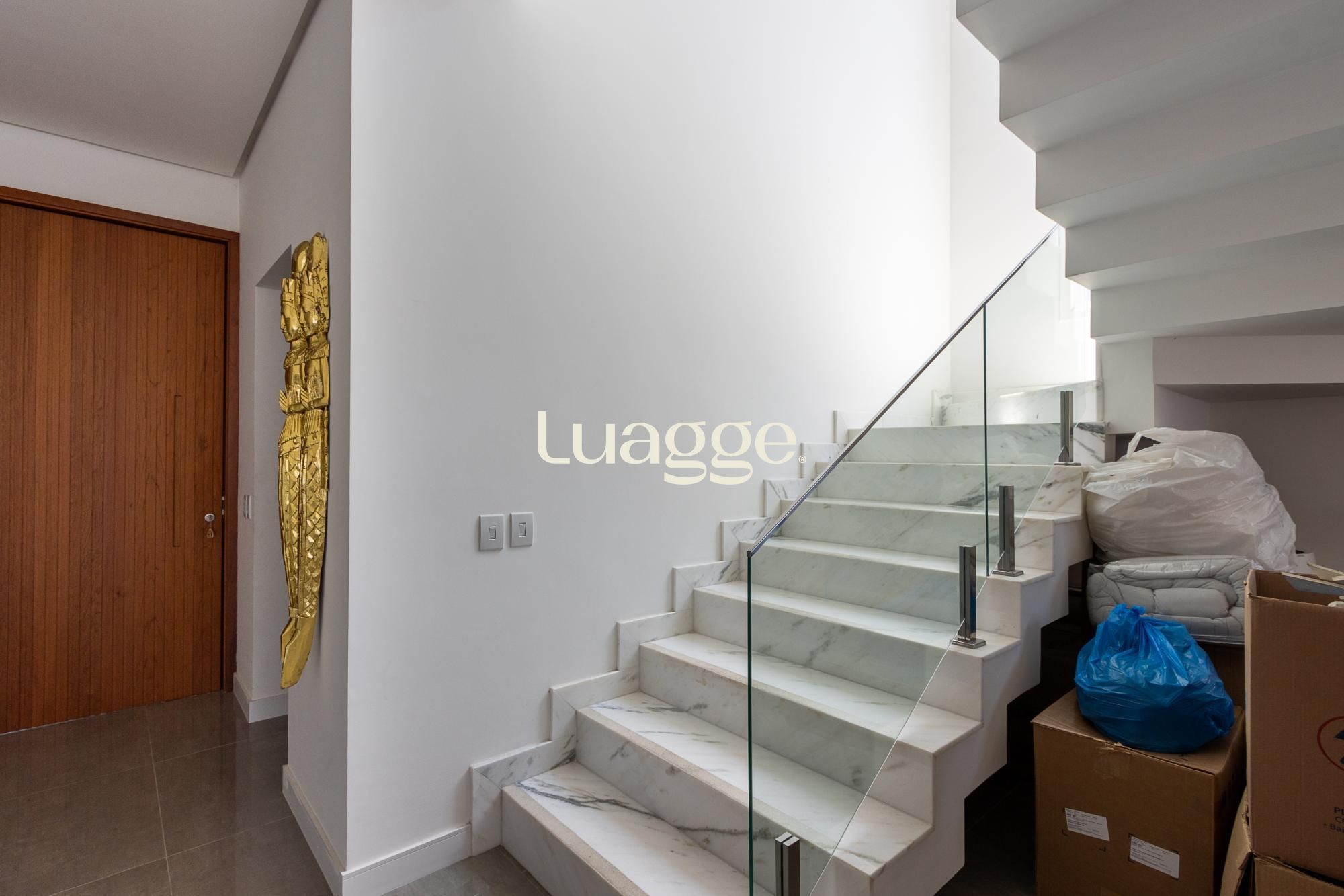 No pavimento superior, são 3 suítes espaçosas, incluindo suíte master com vista para a área de preservação, posição elevada em relação às casas vizinhas e total privacidade. Conta ainda com estar íntimo e sacada com vista privilegiada. Dormitórios amplos, bem ventilados e com excelente iluminação natural.