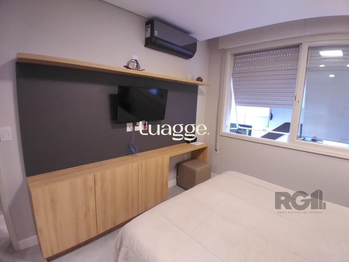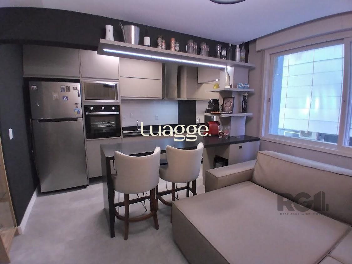 Imóvel impecável ,um dormitório,um banheiro, amplo living integrado com a cozinha, totalmente mobiliado, boa posição solar, leste , só entrar e morar, uma vaga de garagem coberta e escriturada . Condomínio com porteiro eletrônico, dois elevadores, salão de festas e zelador.