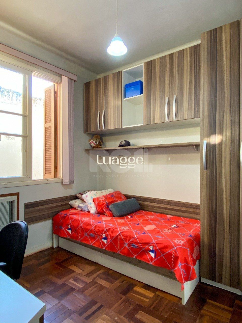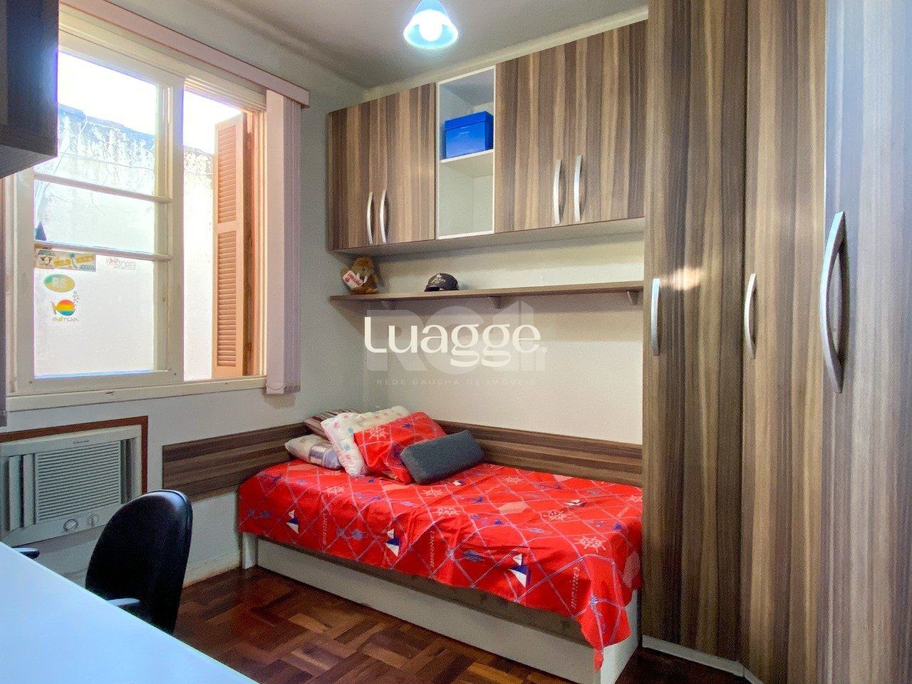 Apartamento 2 dormitórios, living dois ambientes, cozinha, área de serviço separada e banheiro social. Último andar, com orientação solar Norte e Sul, boa luminosidade e banheiro reformado.