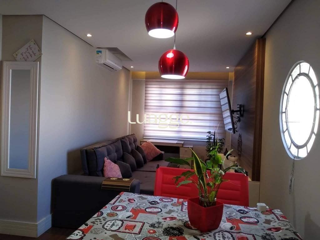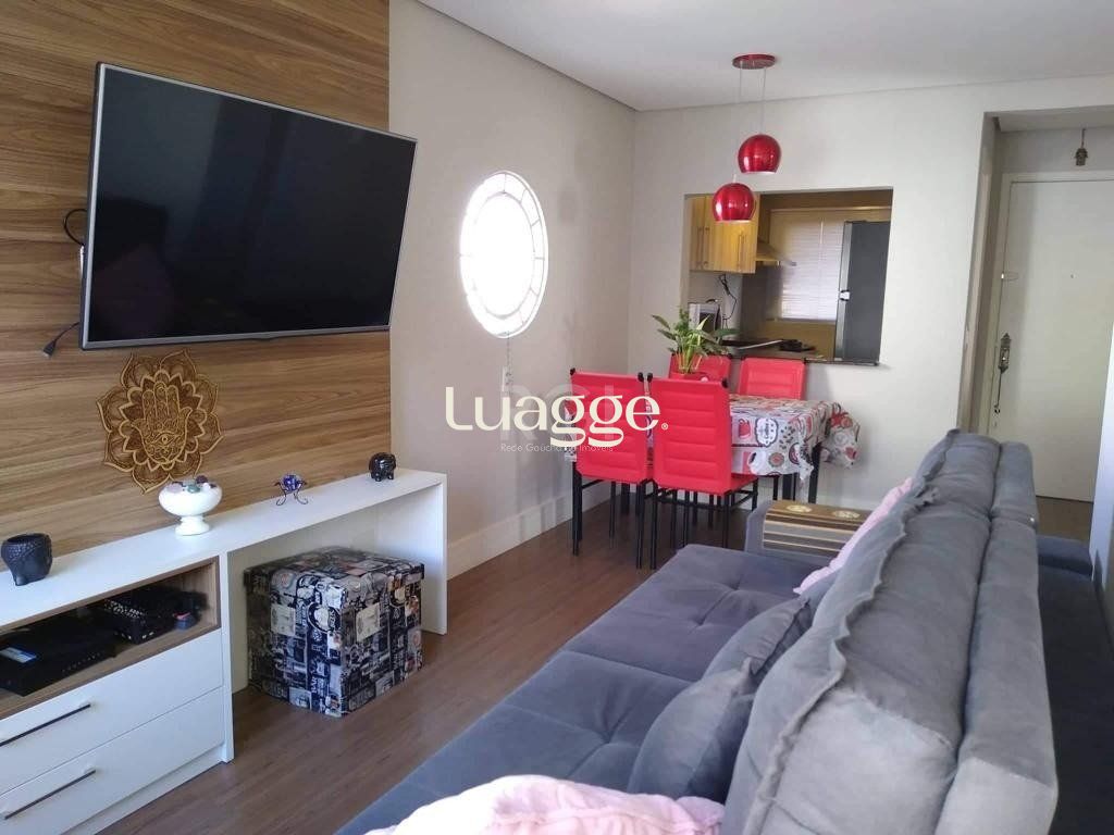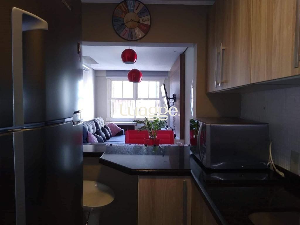 Vende-se apartamento impecável, ensolarado, com vista panorâmica, 1 dormitórios amplo, cozinha americana, banho social, living em 2 ambientes e área de serviço independente. Prédio com porteiro eletrônico, zeladoria e terraço com churrasqueira.