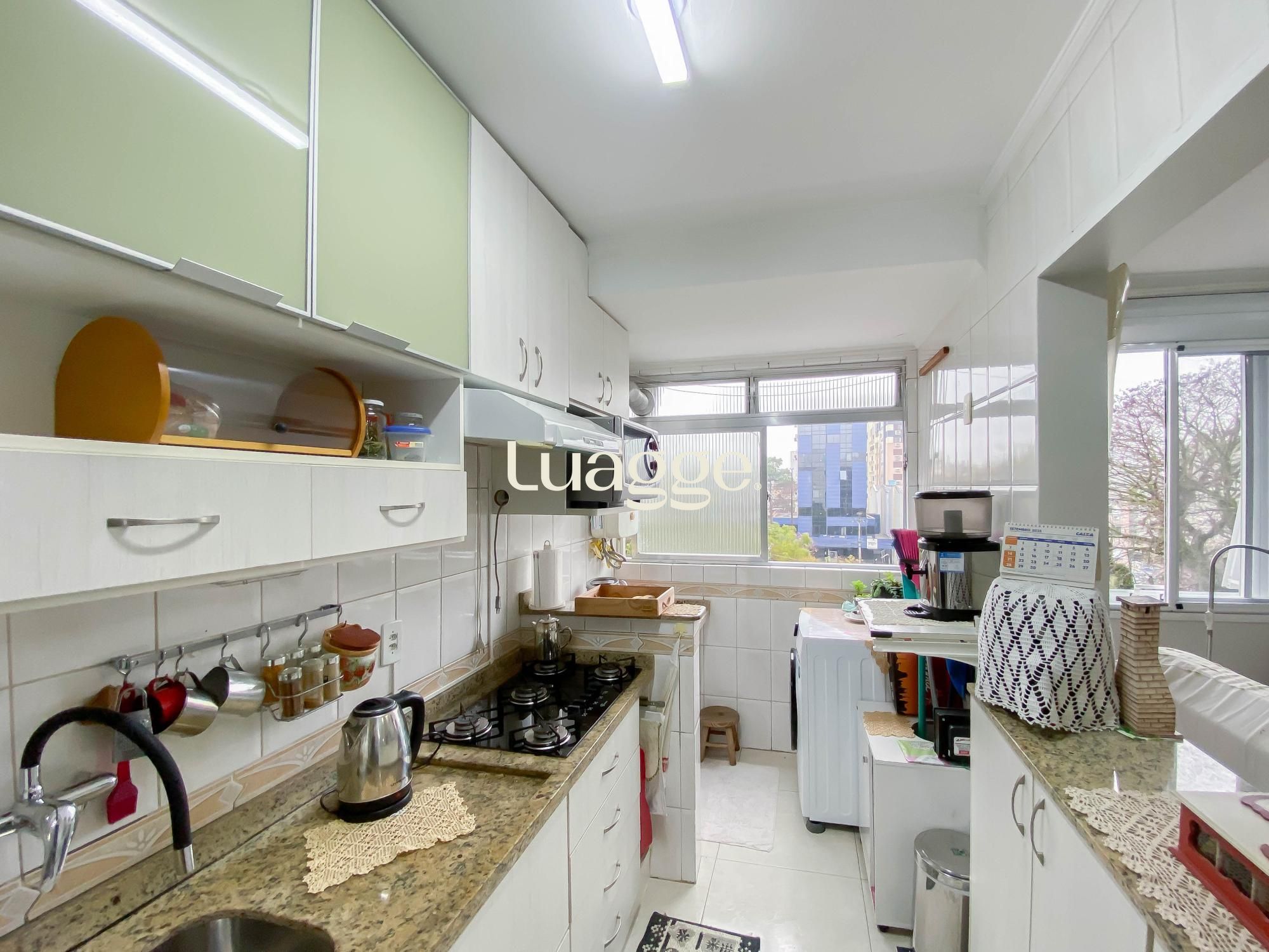 A cozinha é um destaque à parte: totalmente equipada com móveis planejados, balcão em granito e espaço funcional para eletrodomésticos. O banheiro possui box de vidro e bancada em granito.