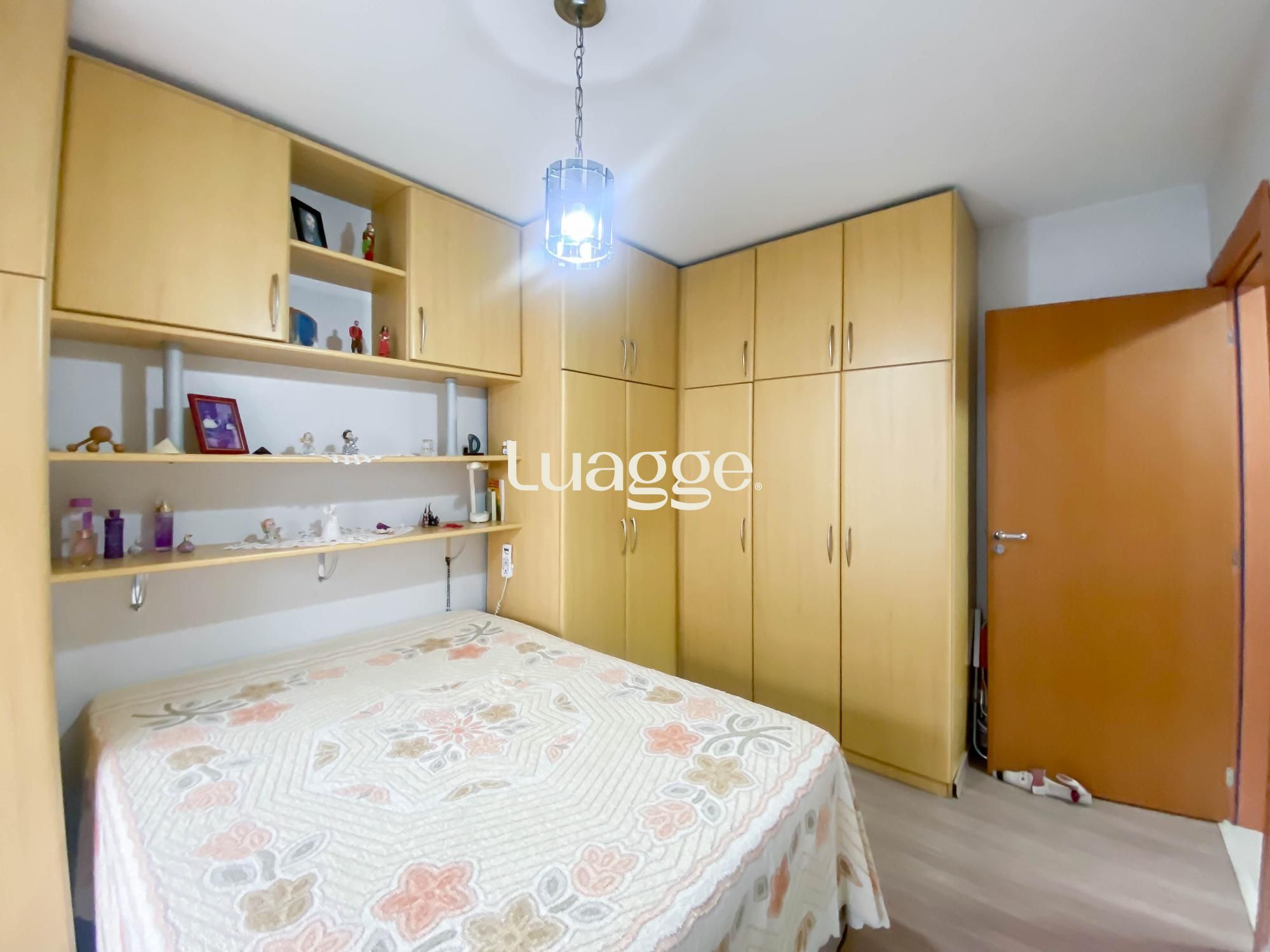 Dormitórios com guarda-roupas e estantes sob medida, otimizando o espaço;
