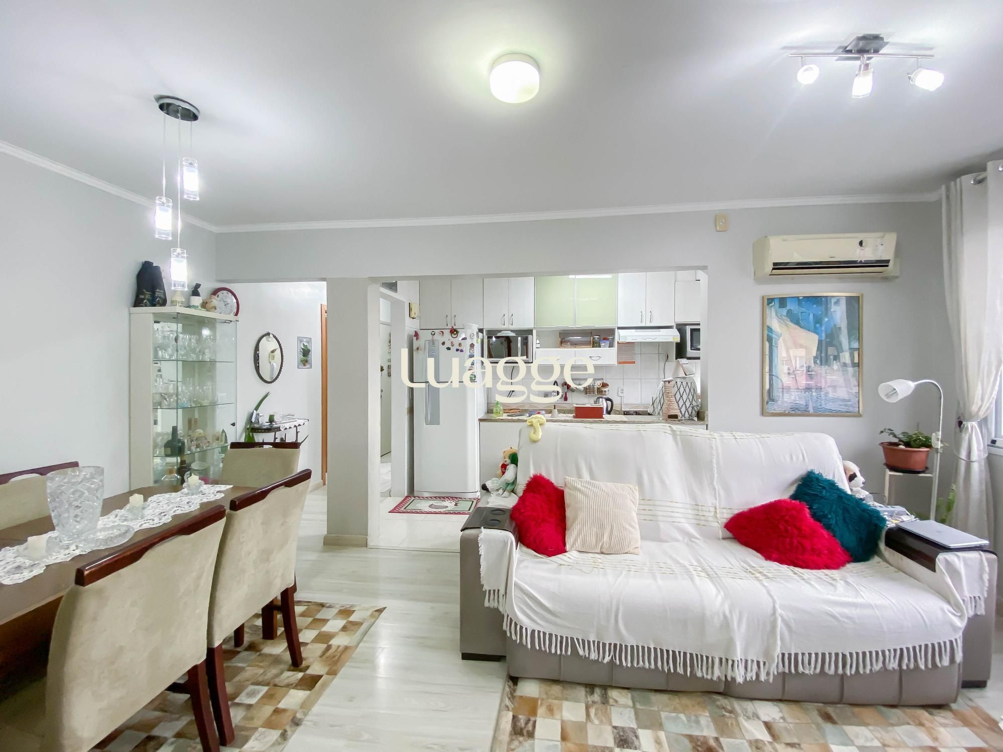 Este apartamento de 64m² privativos oferece 2 dormitórios amplos, com armários sob medida de excelente qualidade, um deles com espaço para home office já planejado. A sala de estar e jantar é integrada, com ótima iluminação natural, ar-condicionado split instalado e piso laminado em bom estado.