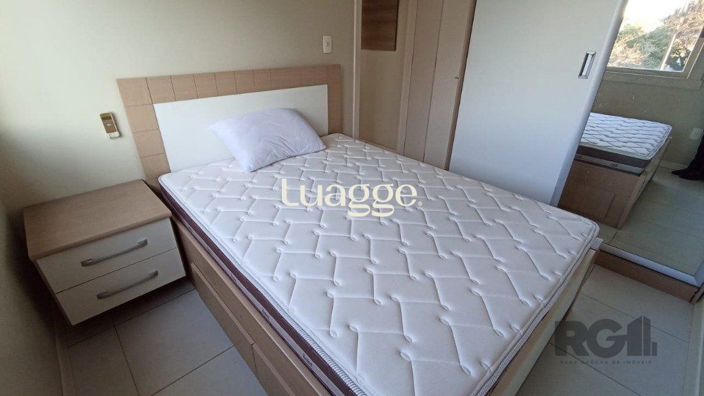 Apartamento 36,69 m² - Mobiliado ,1 Dormitório com armário, cama, split, Living 2 ambientes com sacada, sofá-cama, painel de Tv, mesa de jantar , split , banheiro social com box de vidro temperado, cozinha mobiliada, fogão, geladeira, área de serviço , máquina de lavar, aquecedor novo.