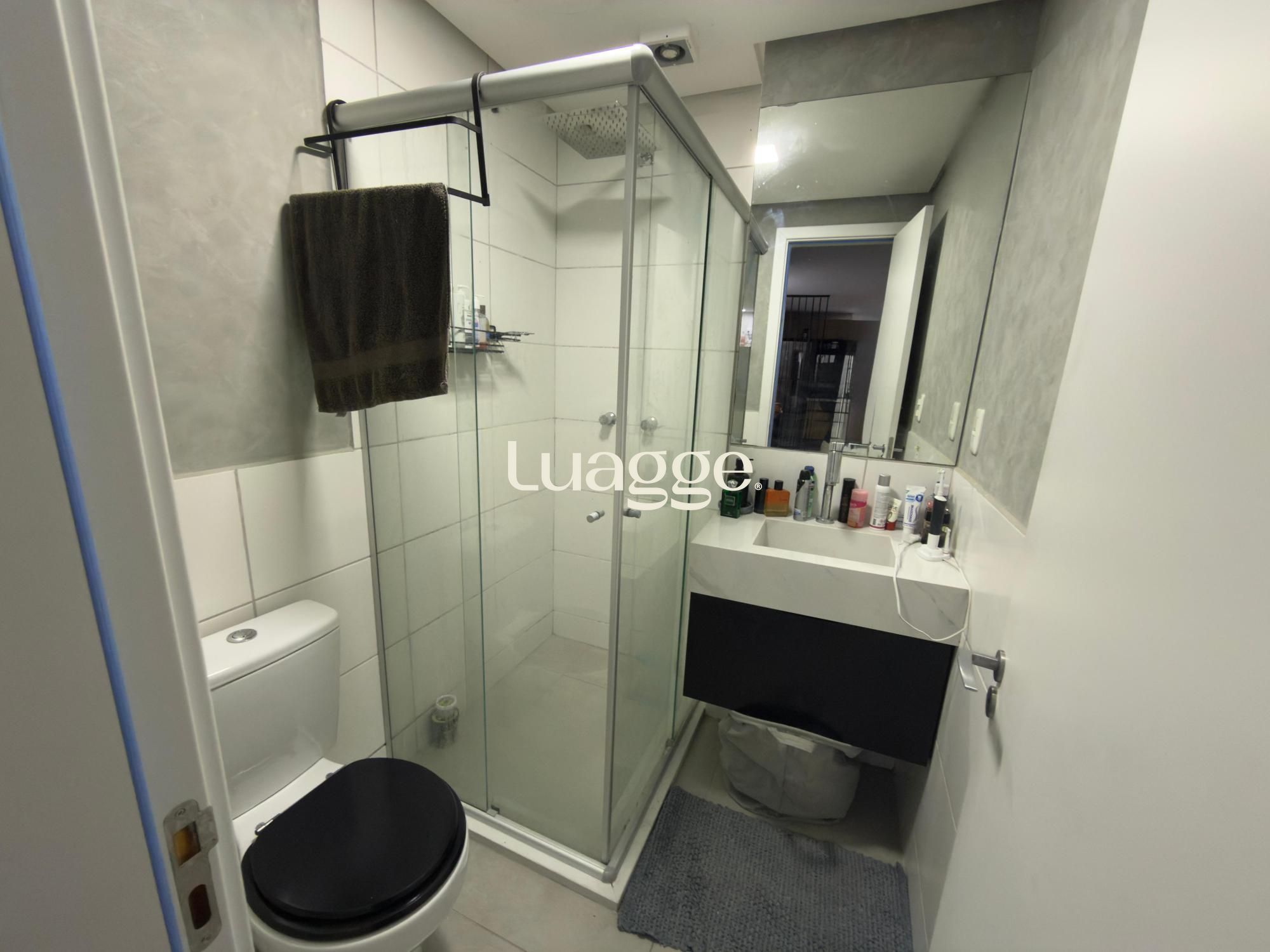 • Banheiro com box em vidro, louças e metais
