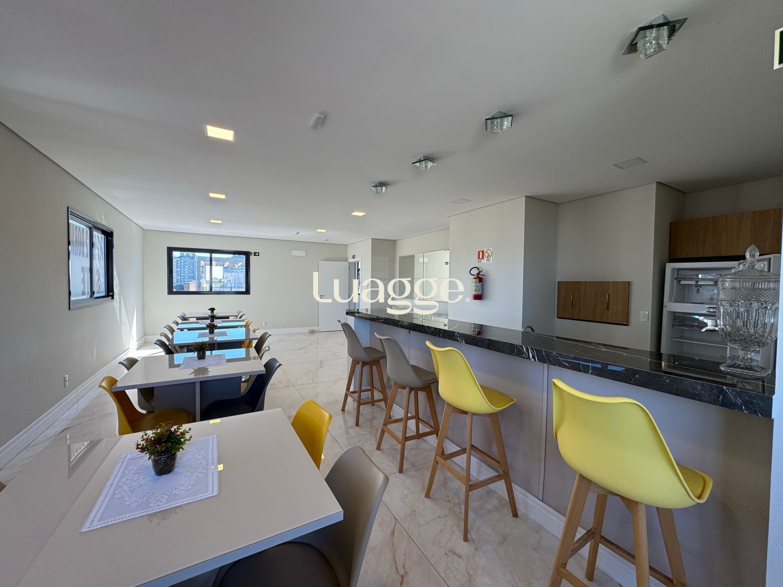 Salão de festas moderno e mobiliado