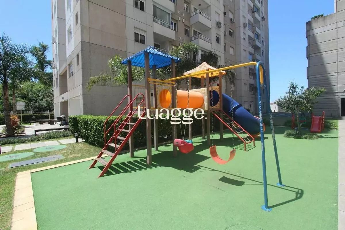Apto 2 dormitórios (1 suíte), vaga coberta, semimobiliado, condomínio com piscinas, academia, quadras e portaria 24h em Porto Alegre.