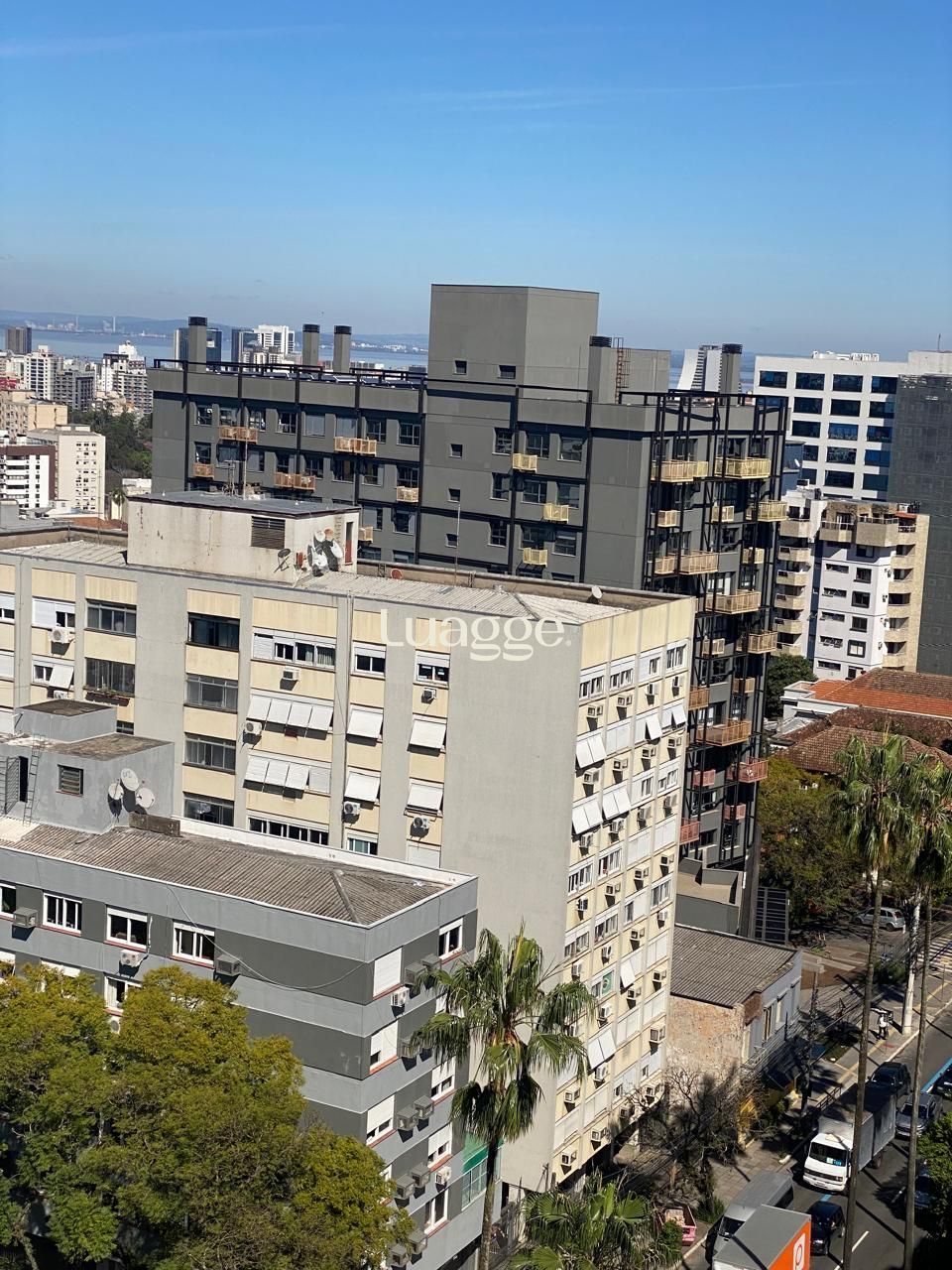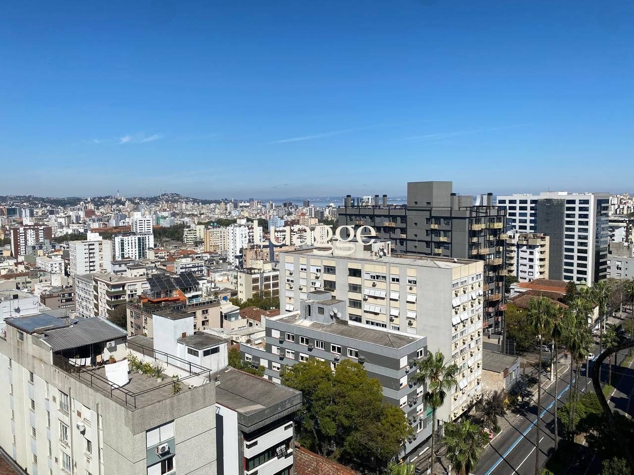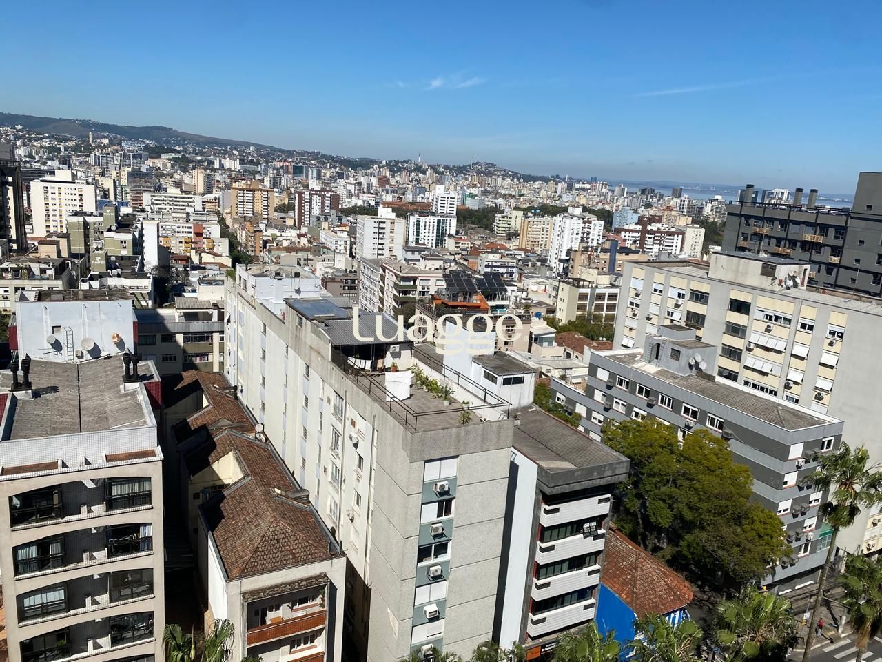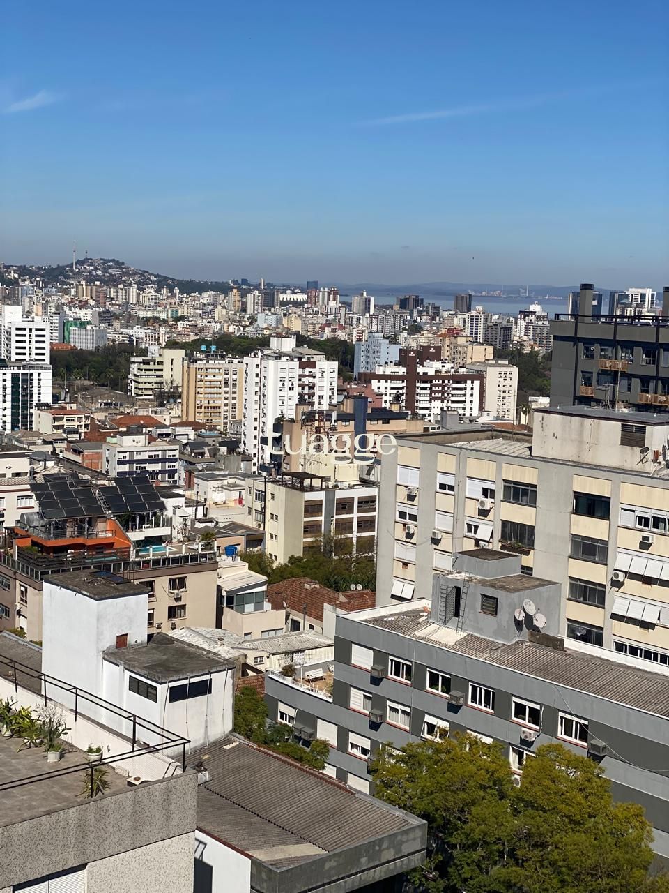 Frente, andar alto, vista de cinema para a zona Sul e o rio Guaiba.