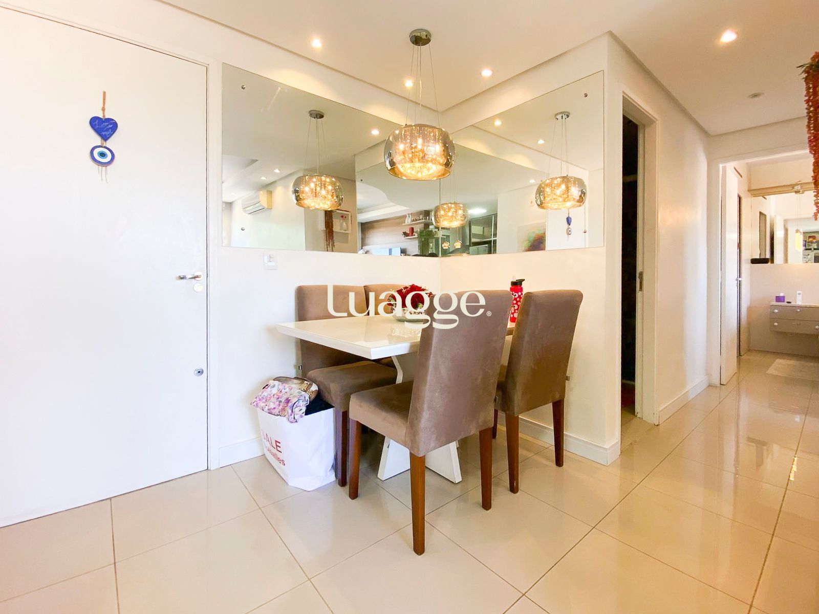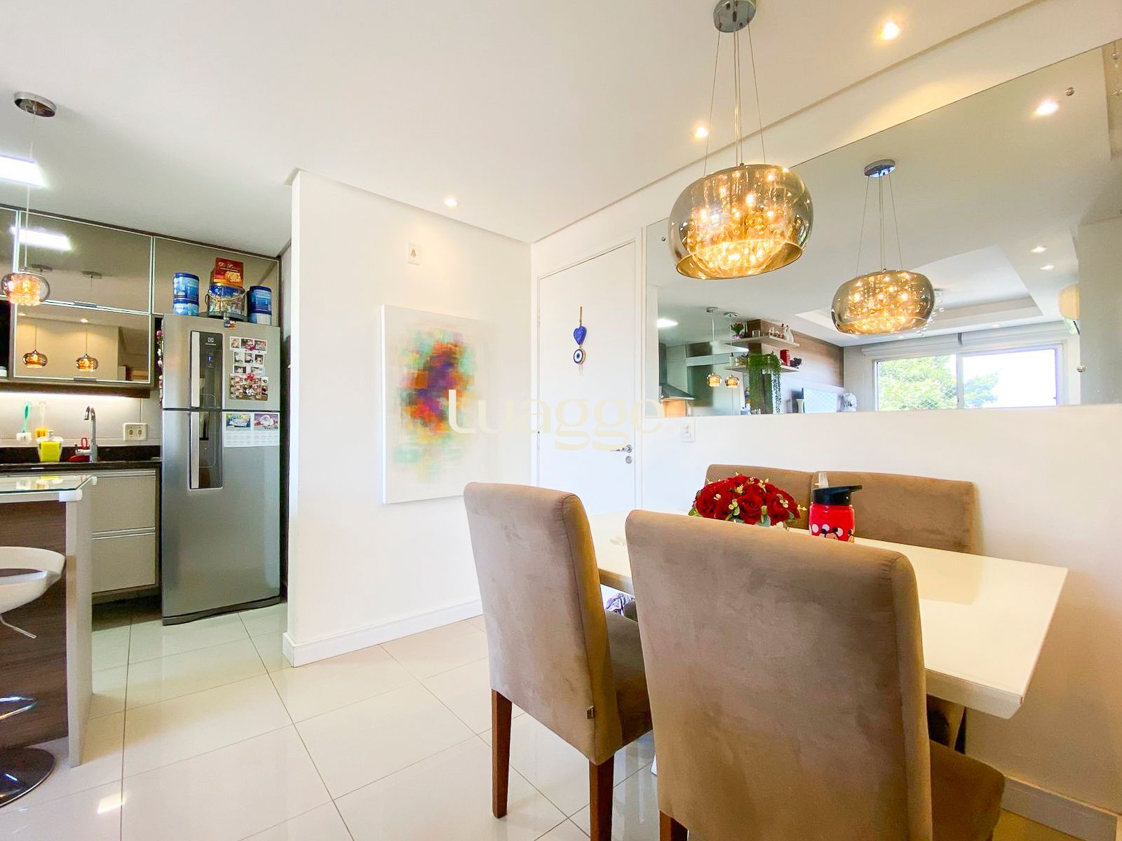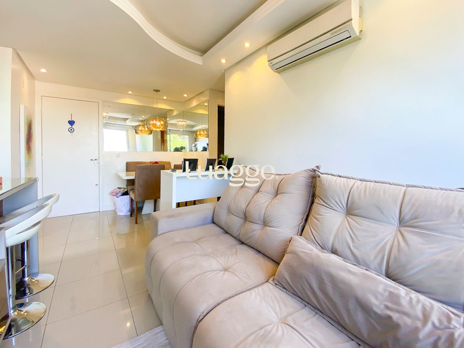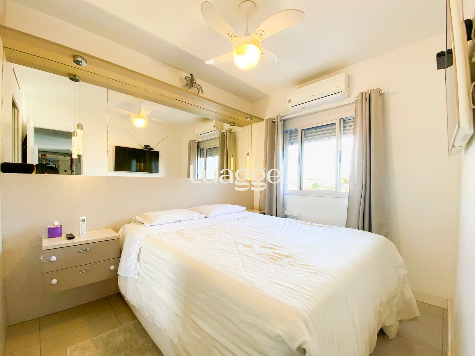 Dois dormitórios, rebaixamento em gesso com led na sala, armários planejados de alta qualidade em todo o apartamento que ficam, piso porcelanato, dois ar condicionados. Além de uma bela vista com sol pela manhã. Uma vaga descoberta escriturada.