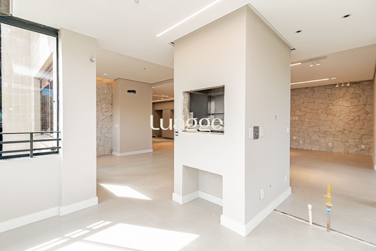 A área social é marcada por um amplo living com diferentes ambientes de convivência, lareira e excelente iluminação. O espaço gourmet com churrasqueira integra-se de forma harmoniosa ao living, tornando-se perfeito para receber convidados com conforto e elegância. O ambiente ainda conta com lavabo de apoio.