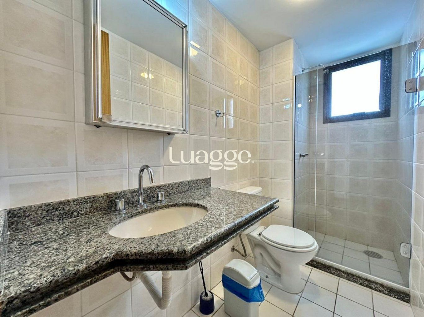 Banheiro totalmente revestido em cerâmica, box de vidro, armários planejados, ambiente arejado e bem iluminado. Área de serviço ampla, ventilada e iluminada.