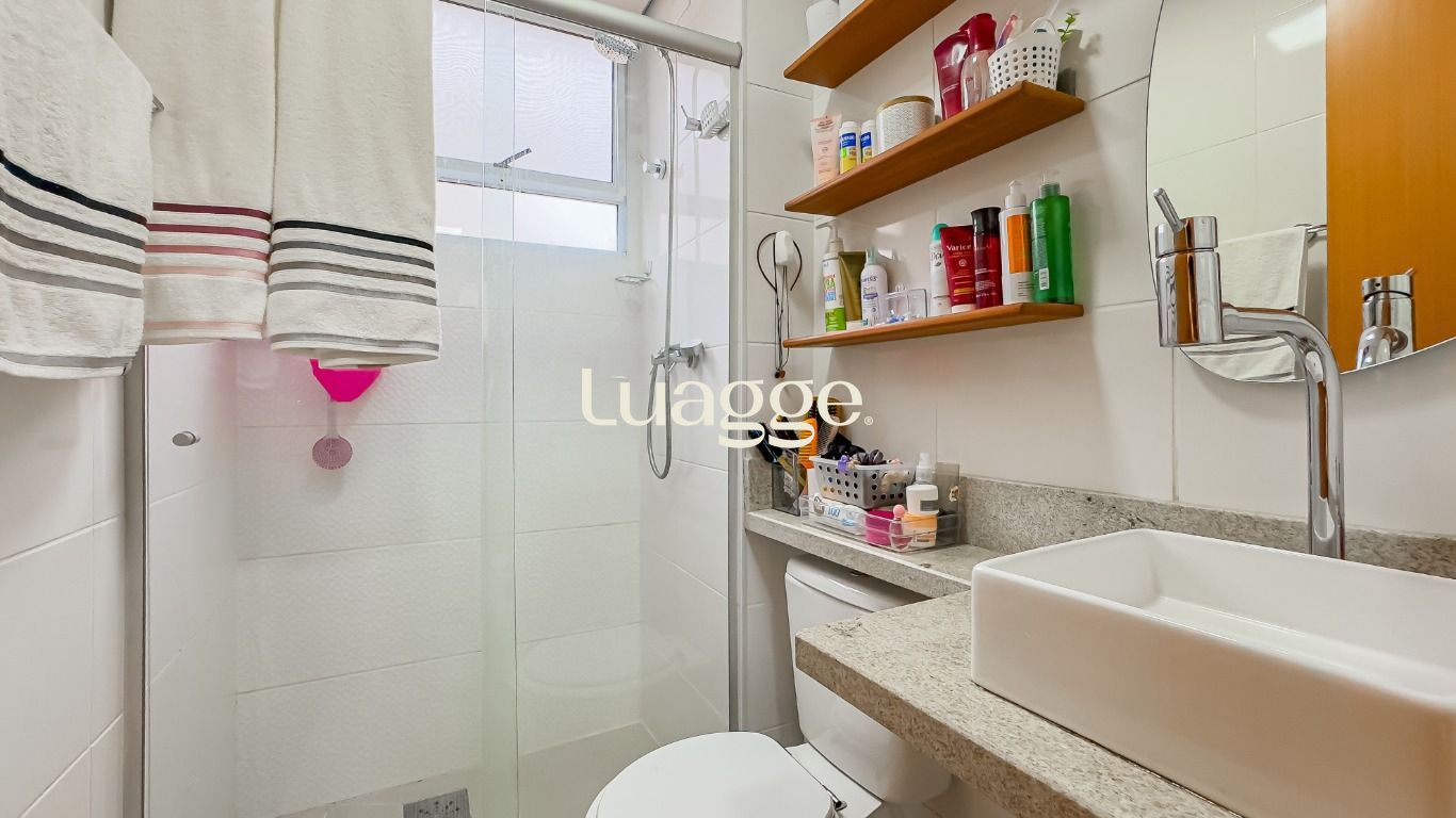 Banheiro com ventilação natural, box fechado e água quente.