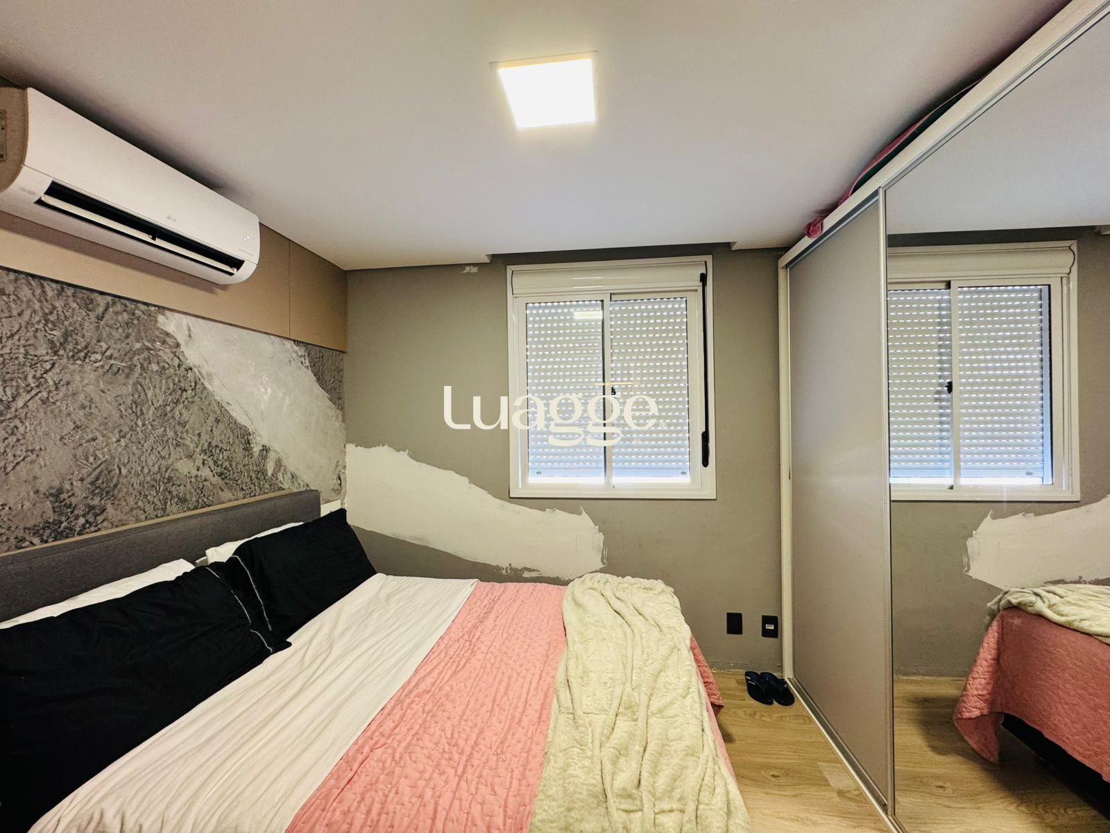 Apartamento com 67 m² de área privativa, distribuídos em 3 dormitórios, sendo 1 suíte com armários e ar-condicionado split. O imóvel possui living para dois ambientes com sacada, cozinha semi mobiliada com armários, balcão e iluminação, além de área de serviço integrada com ventilação direta, tanque e aquecedor.