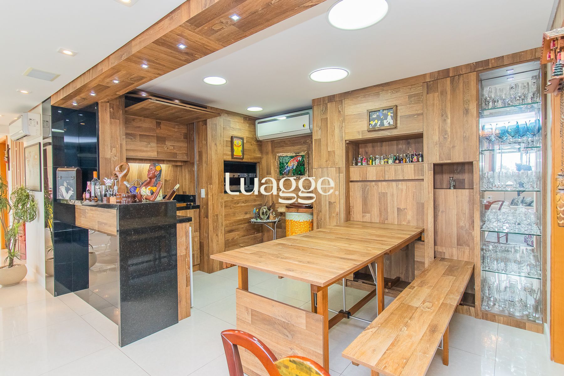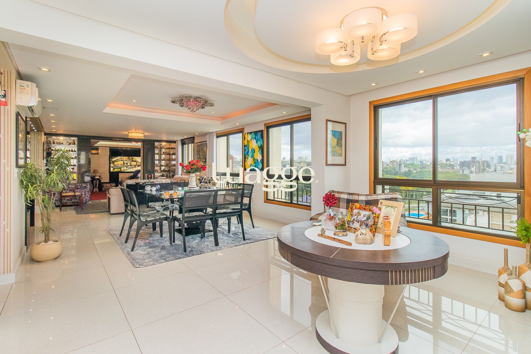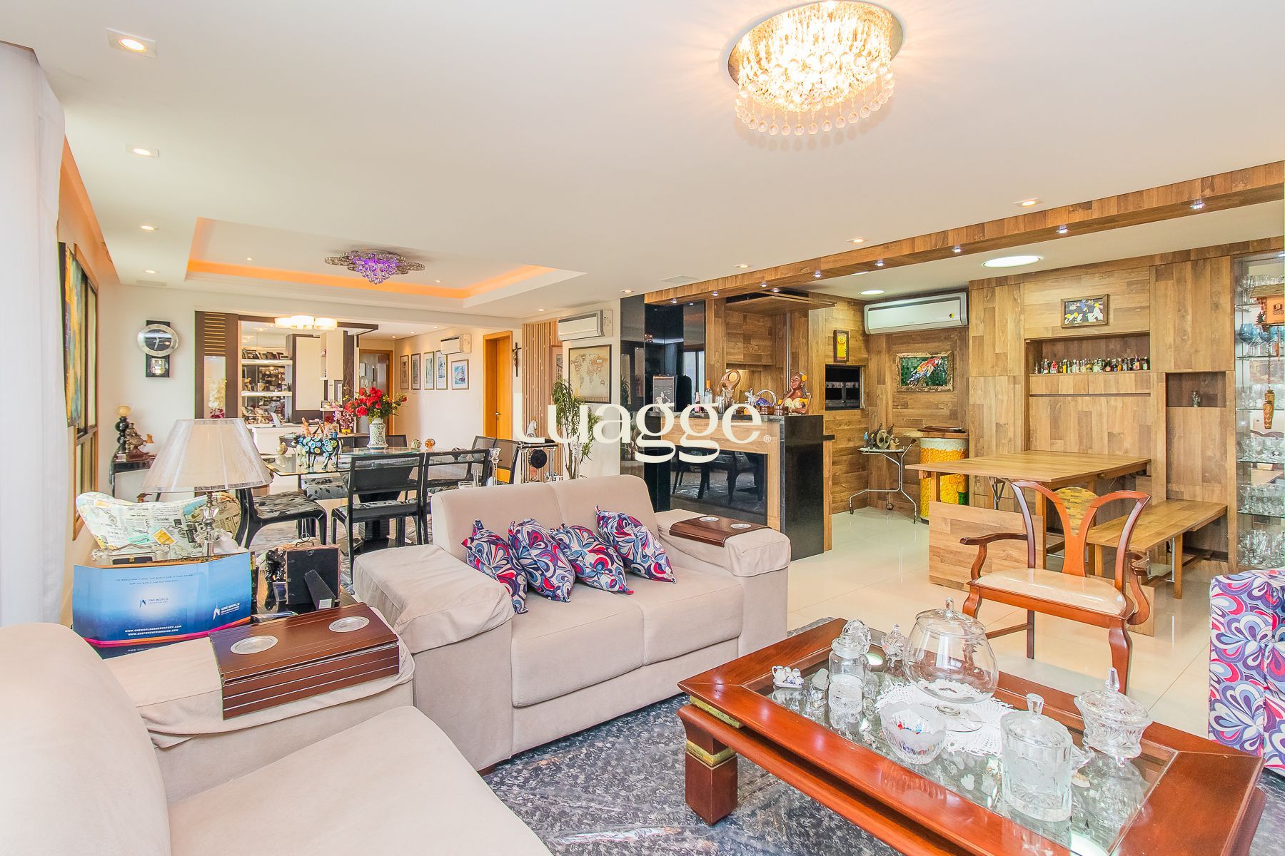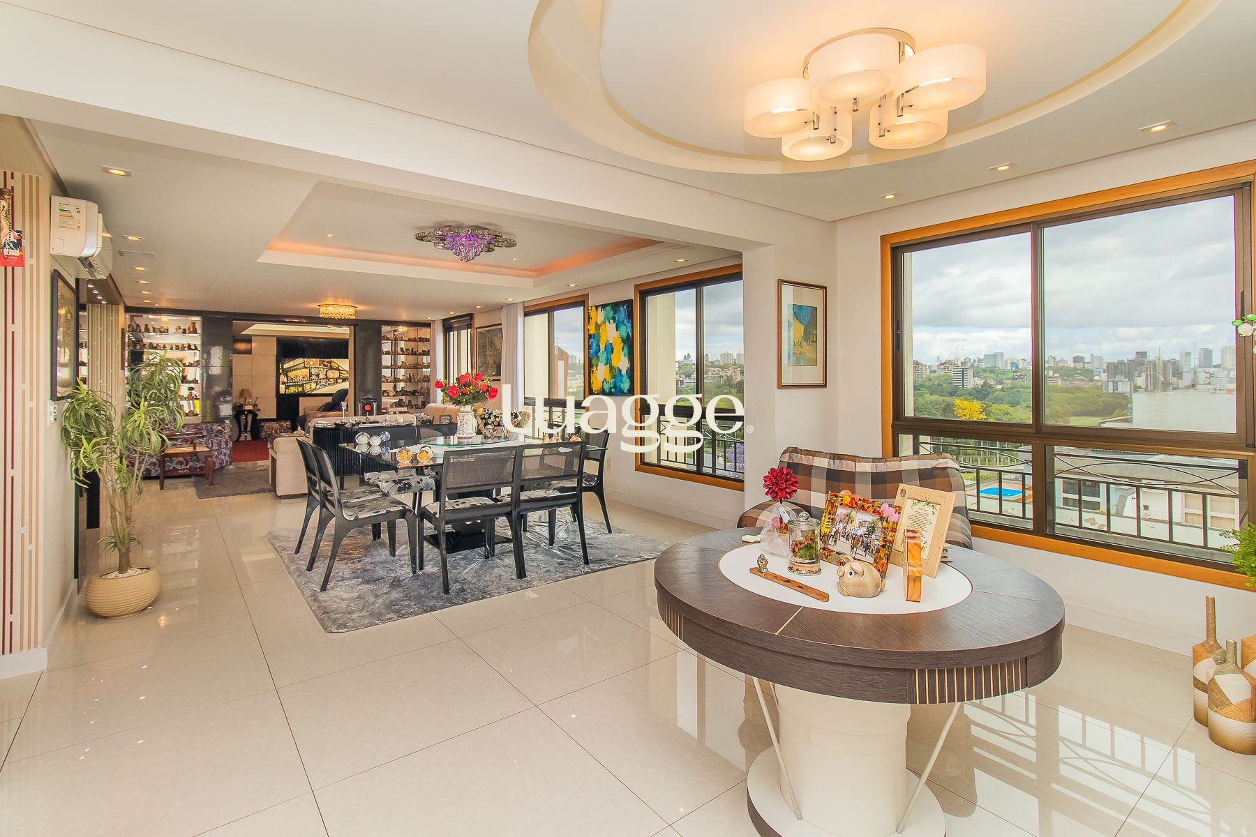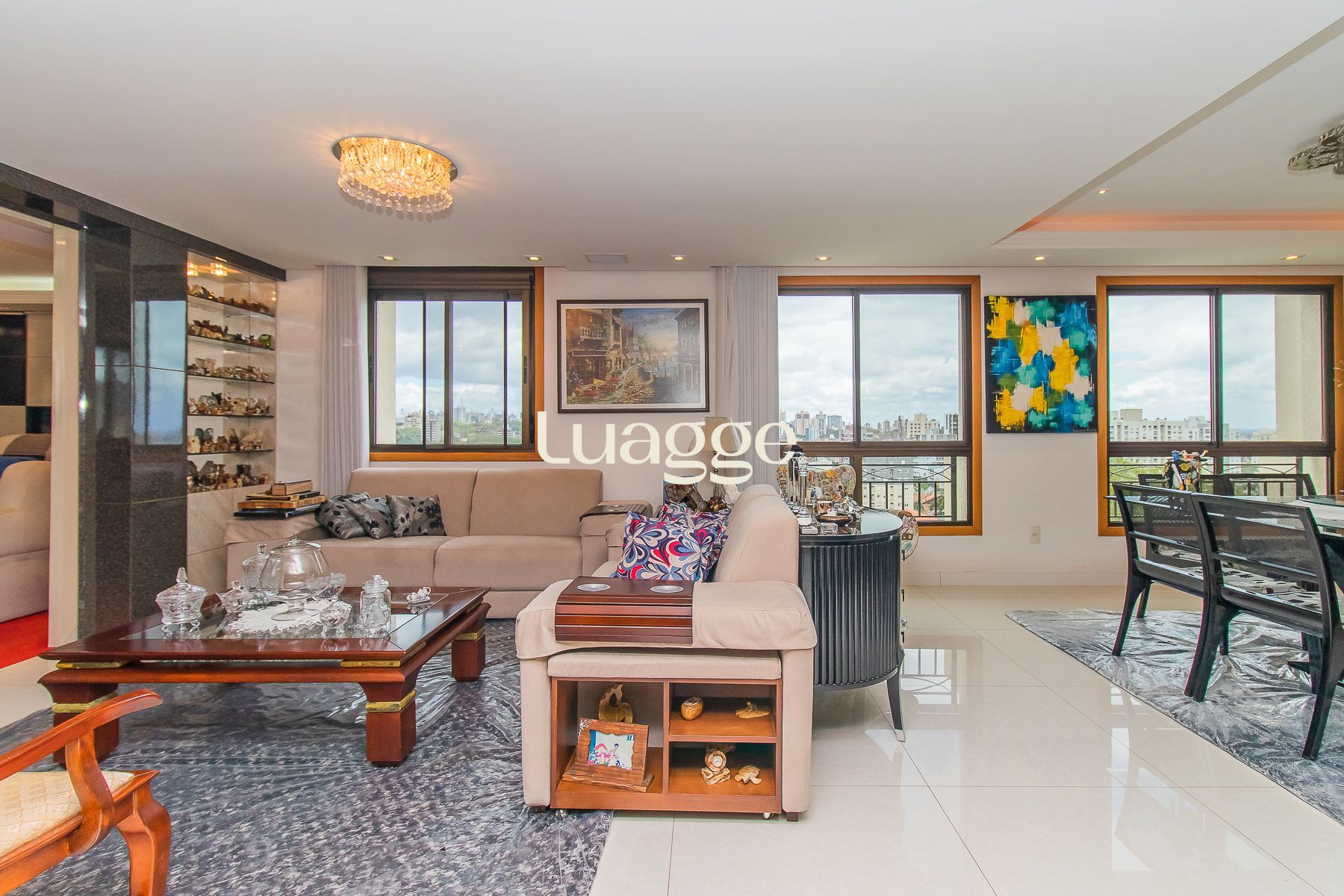 Impecável apartamento semimobiliado de 196m² privativos em andar alto com 3 dormitórios, sendo um dormitório transformado em escritório, ampla suíte, living com 3 ambientes e espaço gourmet com churrasqueira, sala de cinema com telão, projetor e home teather. Banheiro social, lavabo, cozinha espaçosa com móveis sob medida e equipada, área de serviço individual e 7 aparelhos de ar condicionado. Além de 4 vagas de garagem cobertas e escrituradas.