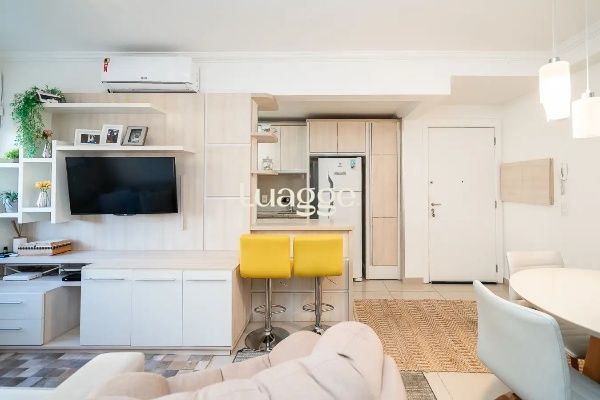 Vende-se apartamento com excelente posição solar e totalmente mobiliado com móveis sob medida. Possui 2 dormitórios, cozinha americana integrada ao living com dois ambientes e uma vaga de garagem escriturada.