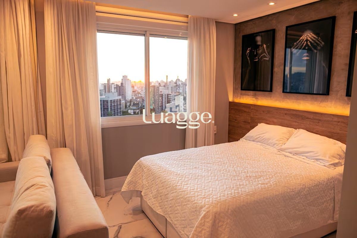 Explore o luxo e o conforto neste incrível apartamento no ponto mais alto da cidade de Porto Alegre/RS. Desfrute da vista mais incrível que se poderia imaginar neste estúdio de 45m² no último andar. Com um design sofisticado, acabamentos premium, como o piso em porcelanato classe A, marcenaria de alta qualidade, paredes em ripado, projeto de som ambiente em todo apartamento, e de iluminação exclusivo, este imóvel oferece conforto e comodidade. Marcenaria em laca preta com cristaleira que separa os ambientes, sistema de TV 360o e lareira ecológica á álcool. No dormitório a vista é incrível, pode se ver o por do sol da cama, uma box baú king size com cabeceira em veludo preto, split preto e ventilador de teto. E um belíssimo guarda roupas com sapateira. Cozinha completa com geladeira, micro-ondas e exaustor inox, coocktop 4 bocas, forno elétrico, churrasqueira á carvão e sala de jantar com mesa em vidro branco para 4 lugares. Ainda conta com um armário depósito piso teto, junto á lavanderia com máquina lava e seca. O banheiro lindíssimo com pia em pedra branca e revestimento de porcelanato do piso ao teto em marrom cromo, box de vidro. O apartamento é completo e impecável, proporcionando uma experiência única. Vaga de garagem coberta para 1 carro, com acesso pelo edifício garagem com segurança 24h. Este imóvel não só é ideal para moradia, mas também pode ser uma excelente fonte de renda através do Airbnb. A posição solar privilegiada oferece uma vista deslumbrante para o pôr do sol do Guaíba, estando localizado no 19º andar. O apartamento foi cuidadosamente decorado para proporcionar o máximo de conforto. Não perca a oportunidade de viver com estilo no Axis Home, um empreendimento com infraestrutura completa que inclui portaria 24 horas e mais: 2 elevadores de acesso aos apartamentos; Espaço gourmet com churrasqueira; Academia; Praça e Sollarium; Piscina externa; Piscina interna aquecida; Port cochere com portaria 24 horas; Interfone; Lavanderia compartilhada com espaço de coworking; Restaurante e cafeteria no Axis Office; Estacionamento para visitantes e vagas extras para os proprietários (pay-per-use). Sua localização é imbatível, situada na área mais nobre e elevada do Bairro Petrópolis em Porto Alegre/RS, em frente a uma praça com quadras esportivas e equipamentos de ginástica, com feirinha ecológica todas as sextas-feiras. Ao lado das prestigiadas Avenidas Carlos Gomes e Protásio Alves. O acesso é fácil e conveniente para quem chega pelo aeroporto ou pelas principais vias. Além disso, a posição estratégica permite estar a poucos minutos de universidades, shopping centers, hipermercados, hospitais e escolas, bem como do tradicional Jardim Botânico da região de maior desenvolvimento na Nova Carlos Gomes, proporcionando uma conexão rápida e fácil a qualquer ponto da cidade de Porto Alegre. Não perca tempo, agende agora sua visita! Não. Preço e disponibilidade do imóvel sujeitos a alteração sem aviso prévio.