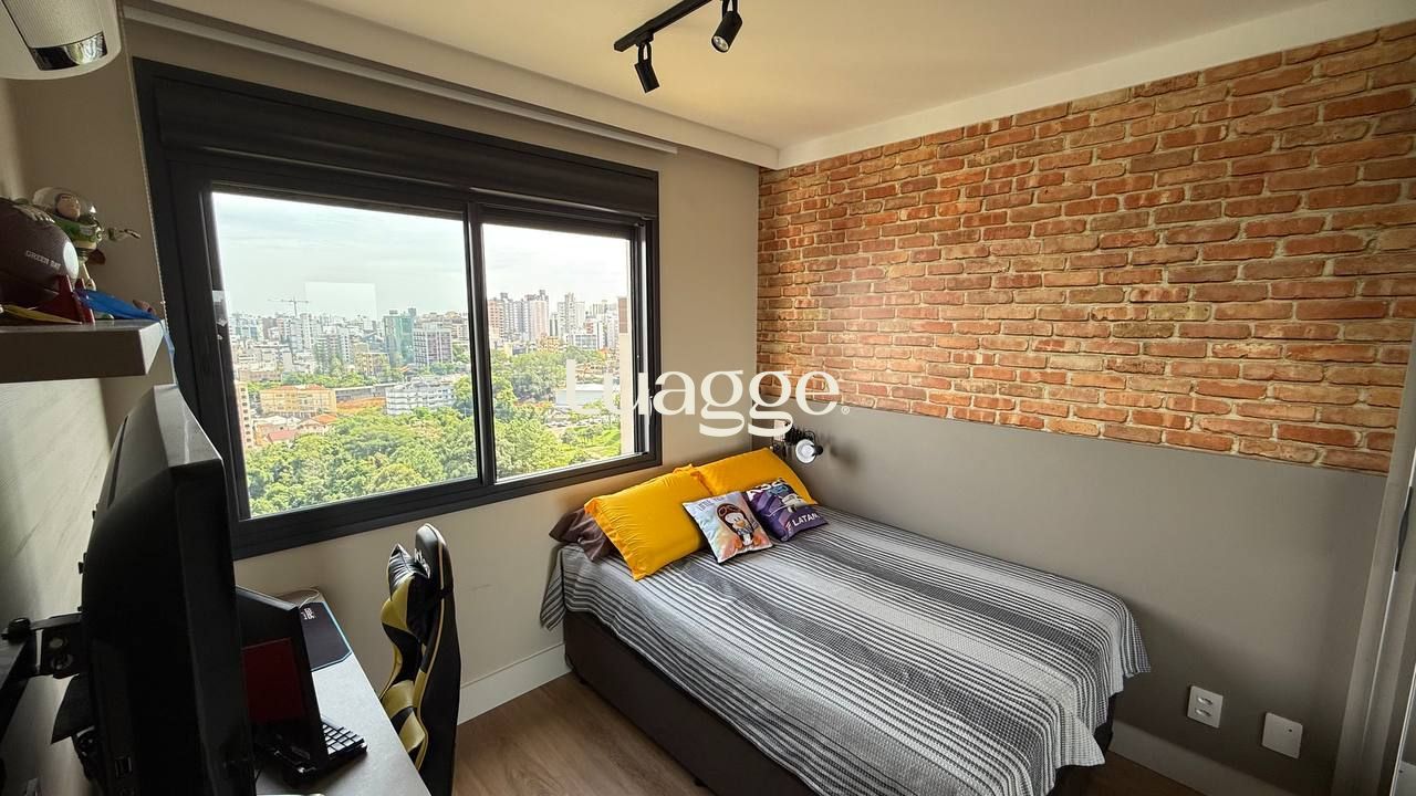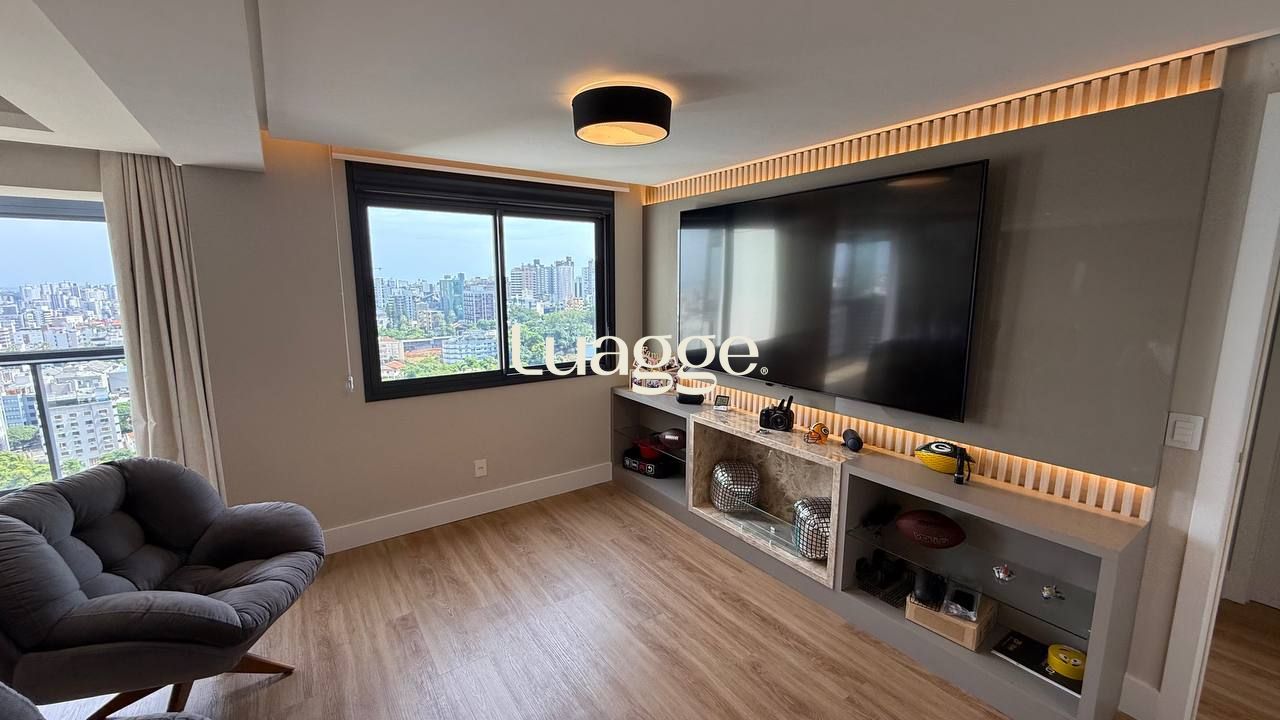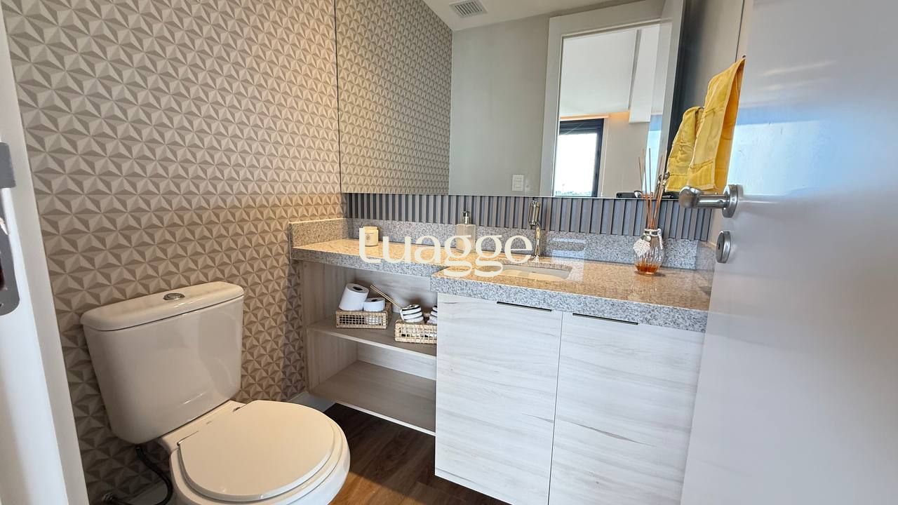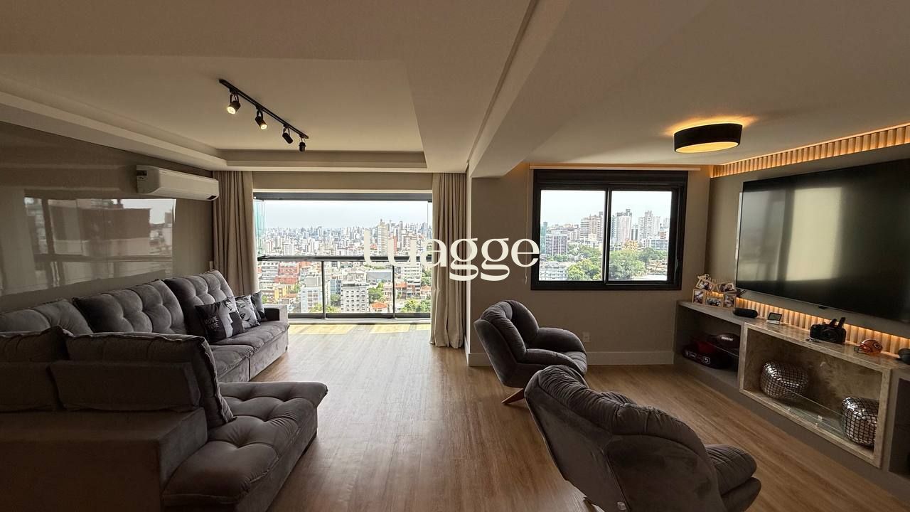 Um apartamento pronto para morar, com conforto, vista e excelente localização. Este imóvel mobiliado, com 99m² privativos, oferece um living acolhedor para dois ambientes, sacada com churrasqueira, janelas com isolamento acústico e uma vista panorâmica que valoriza cada momento em casa. São dois dormitórios, sendo uma suíte espaçosa. A cozinha americana é moderna e funcional, equipada com forno elétrico, cooktop e móveis sob medida. O imóvel ainda conta com lavabo, área de serviço e duas vagas de garagem.