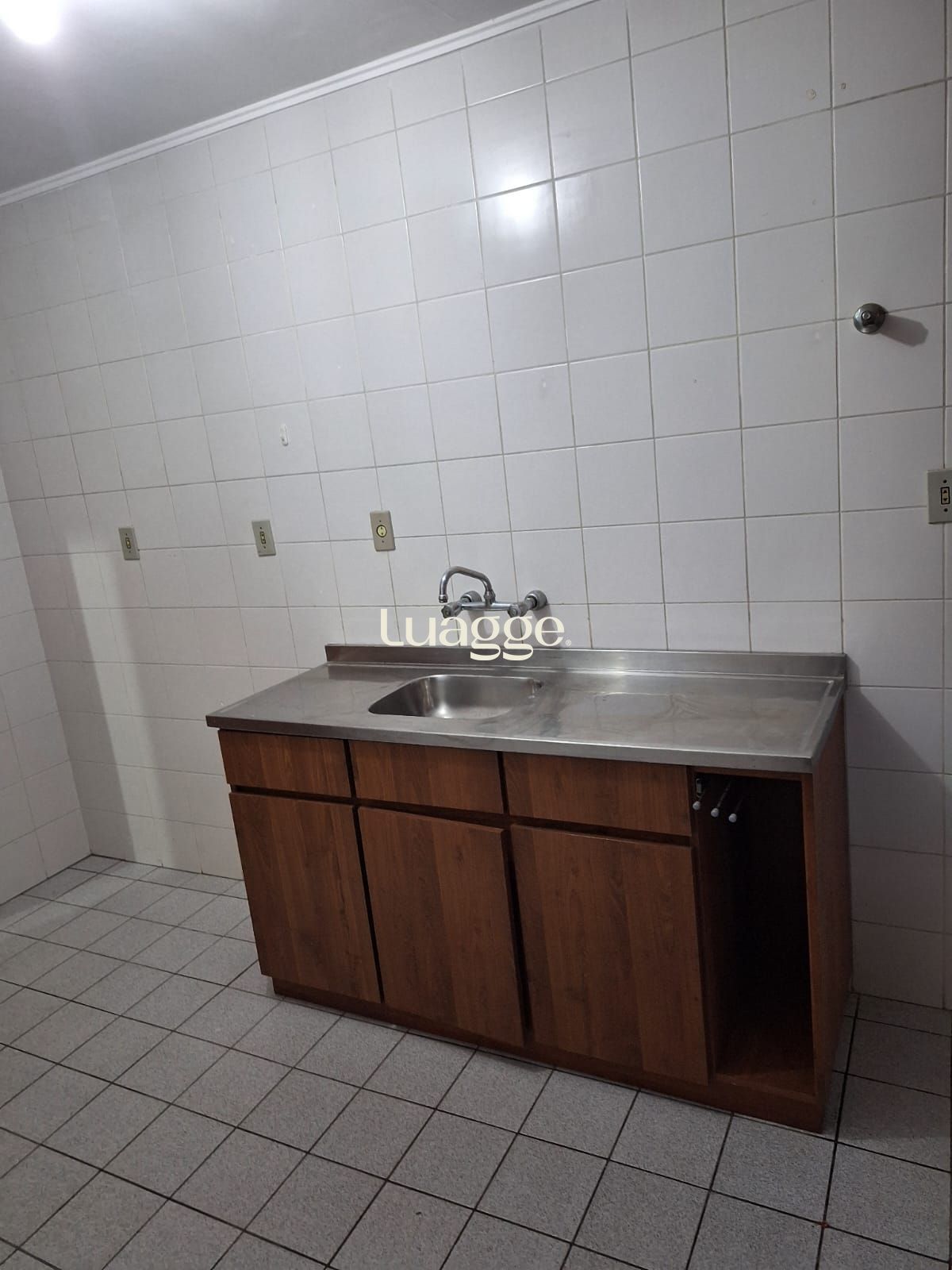 A cozinha é ampla, com área de serviço separada, e o imóvel conta ainda com banheiro social, gás central e vaga de garagem coberta.