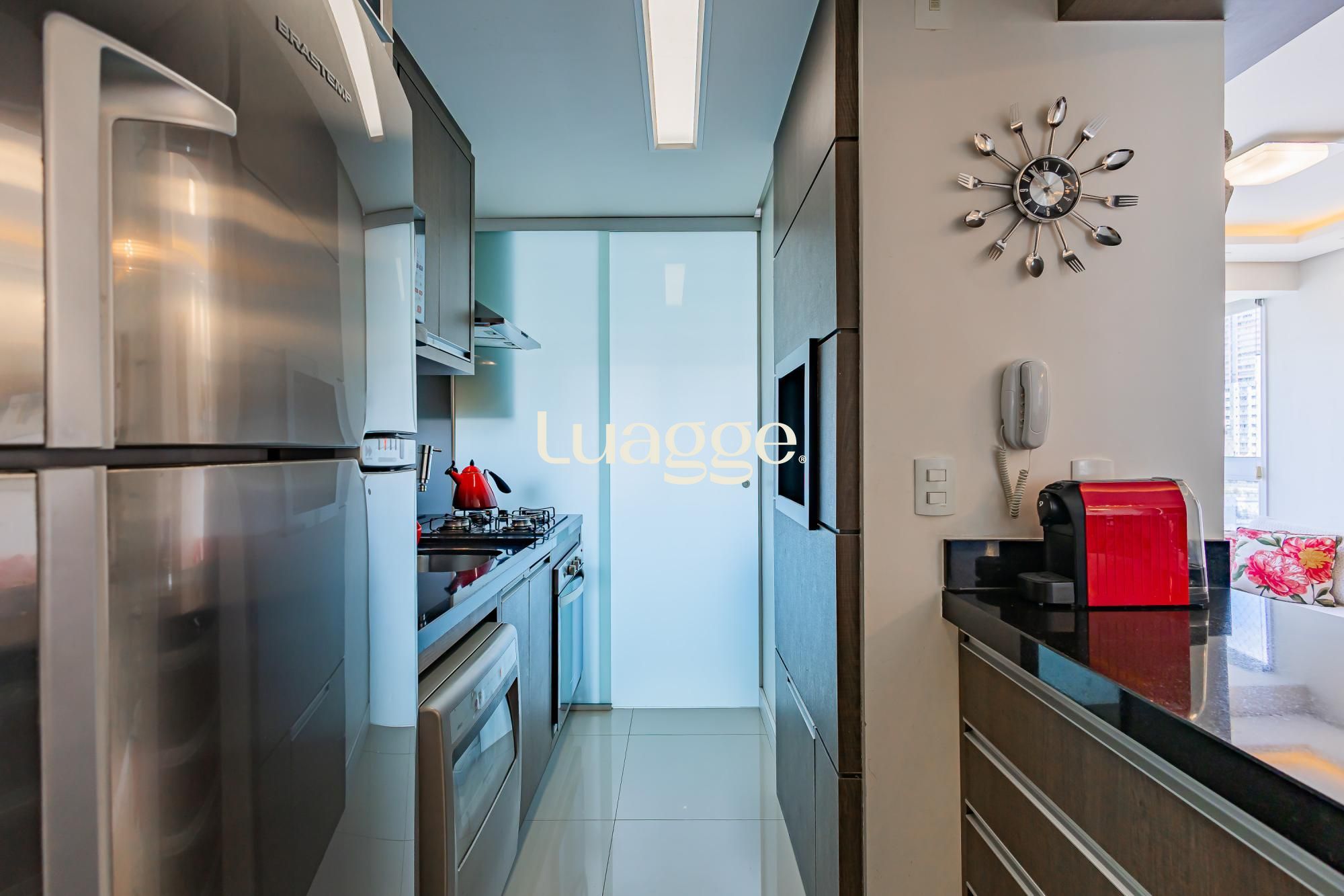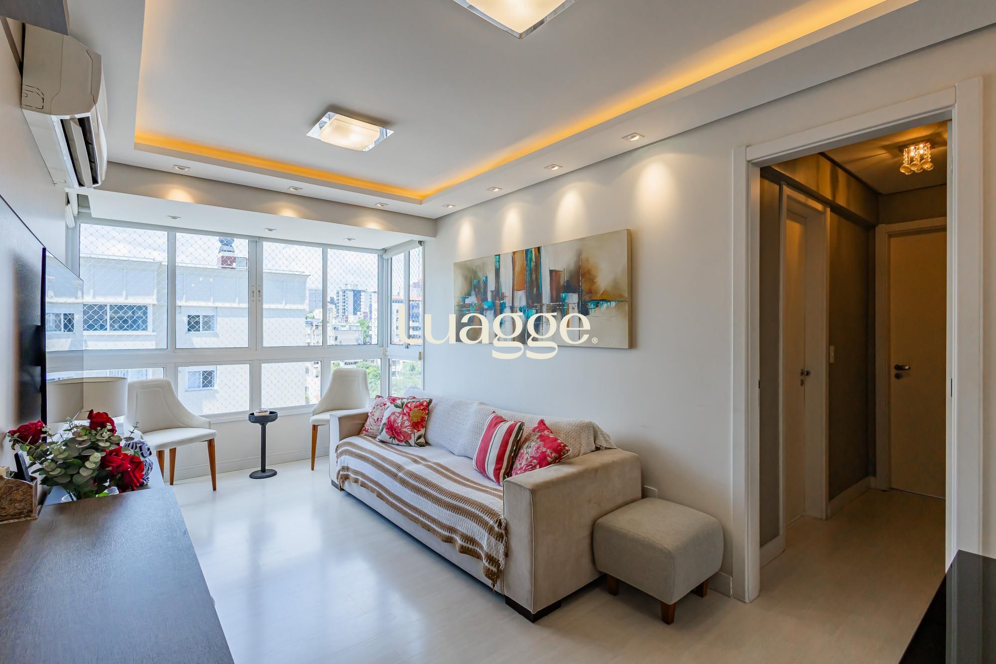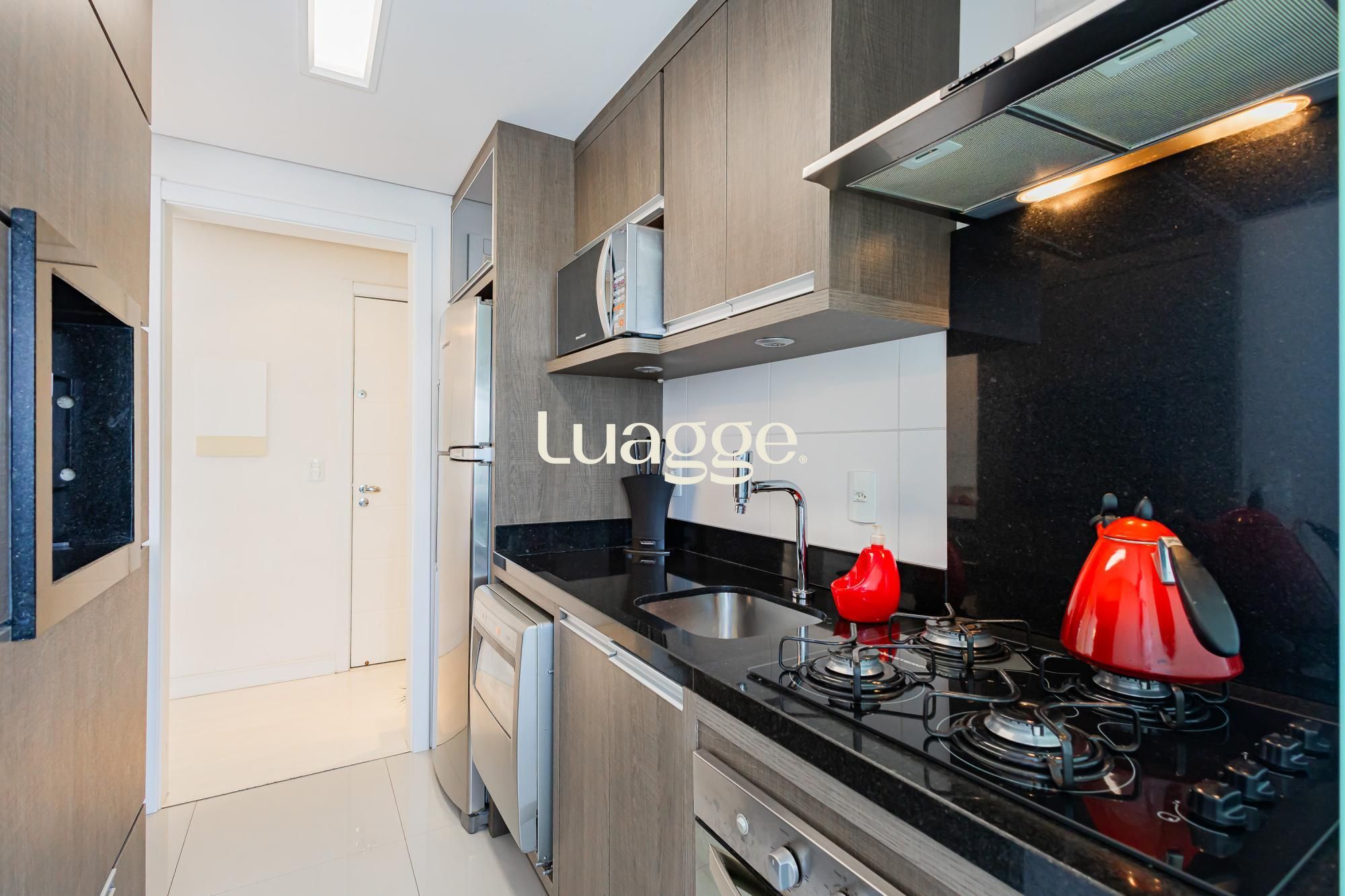 Permanecem todos os moveis fixos, 3 aparelhos de ar condicionado, aquecedor de passagem, pronto para morar. Salão de festas, terraço decorado (solarium), com horta, elevador, medidores individuais de água e gás, e acesso para cadeirantes, zelador em horário comercial, CFTV. A poucas quadras do Zaffari Higienópolis.