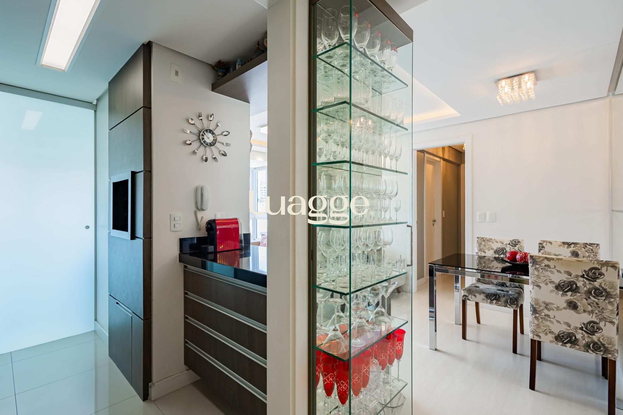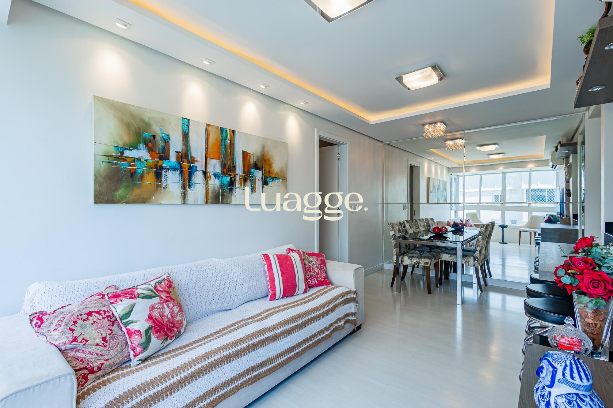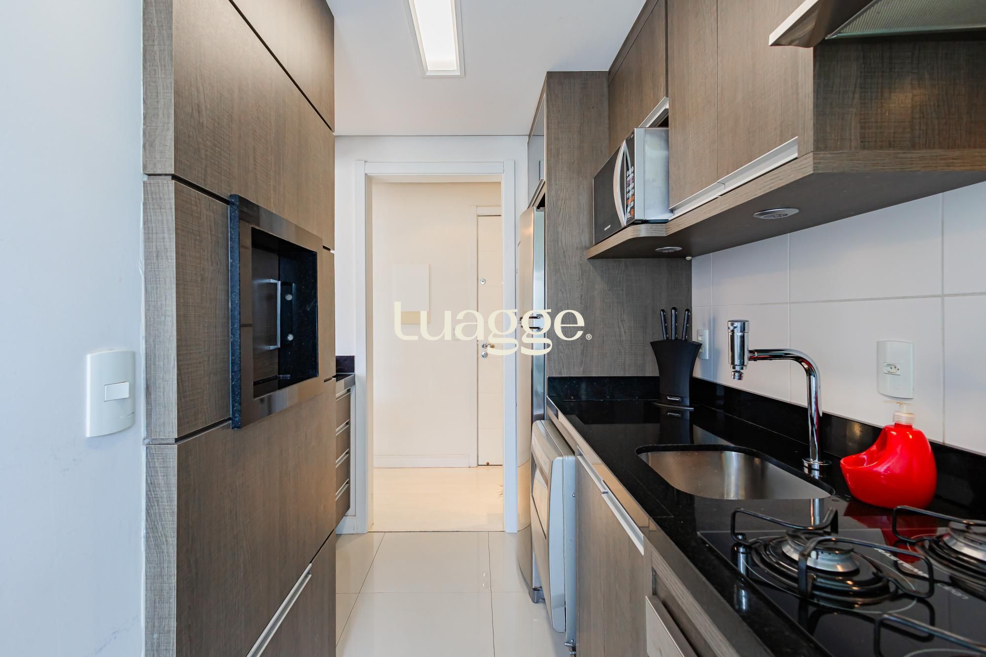 Apartamento de 2 dormitórios com suíte, 2 vagas cobertas e escrituradas, com depósito. Living com 2 ambientes e sacada integrada, banheiro social, cozinha com churrasqueira e área de serviço separada. Andar alto com vista panorâmica, semimobiliado, com móveis planejados de alto padrão.