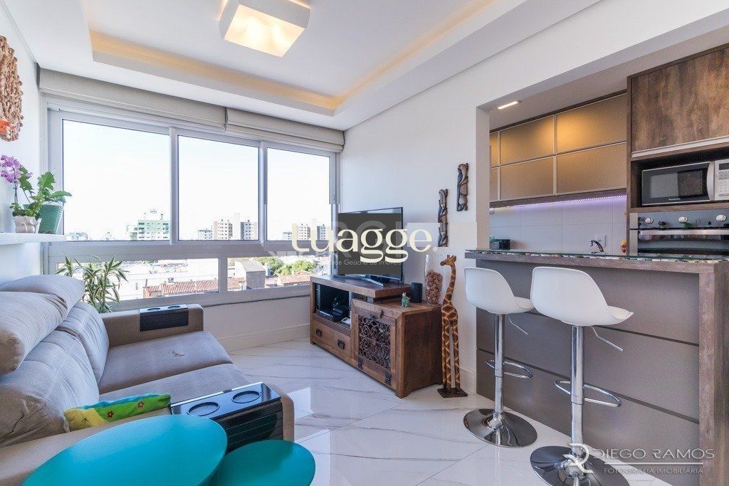 Excelente apartamento 2 dormitórios, sendo 1 suíte, decorado, totalmente mobiliado e em excelente localização. Com boa posição solar, living 2 ambientes bem distribuídos com uma bela vista panorâmica para o bairro. Cozinha completa, móveis sob medida, ficam inclusive parte dos eletrodomésticos e 2 Split. Conta com 2 vagas de garagem escrituradas e cobertas.